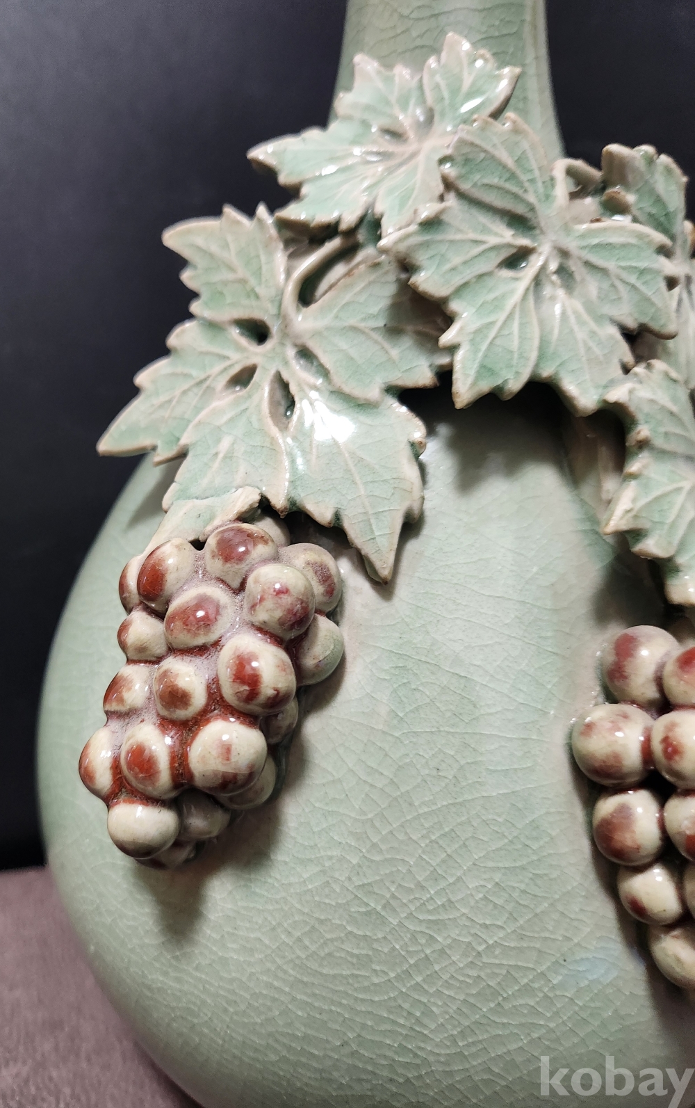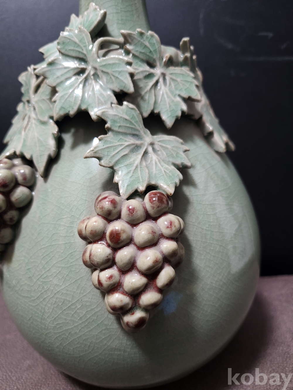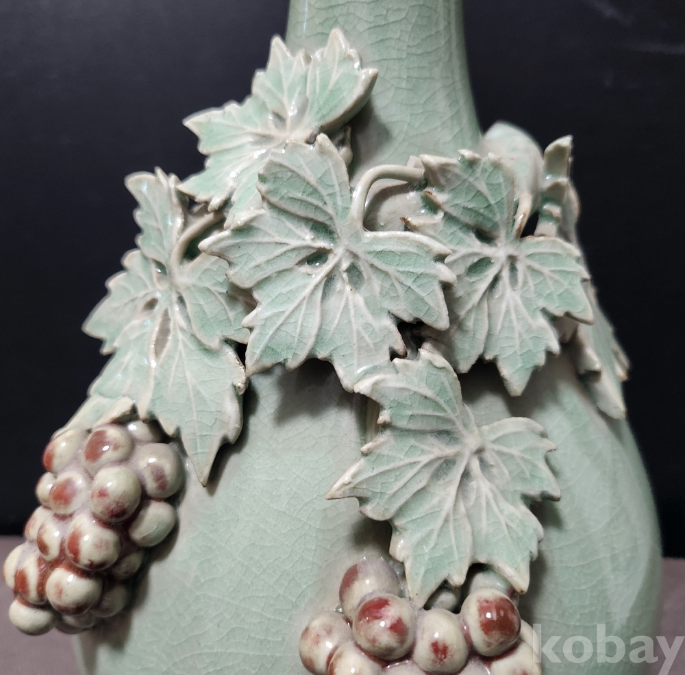 청자철화진사양각포도문주병 靑磁鐵畵辰沙陽刻葡萄紋酒甁