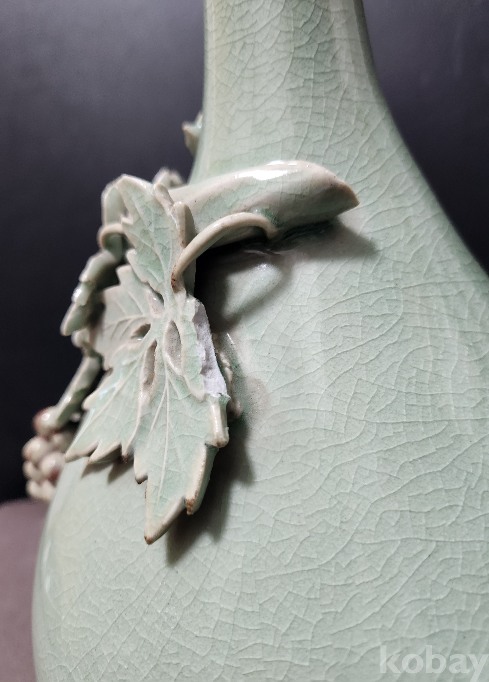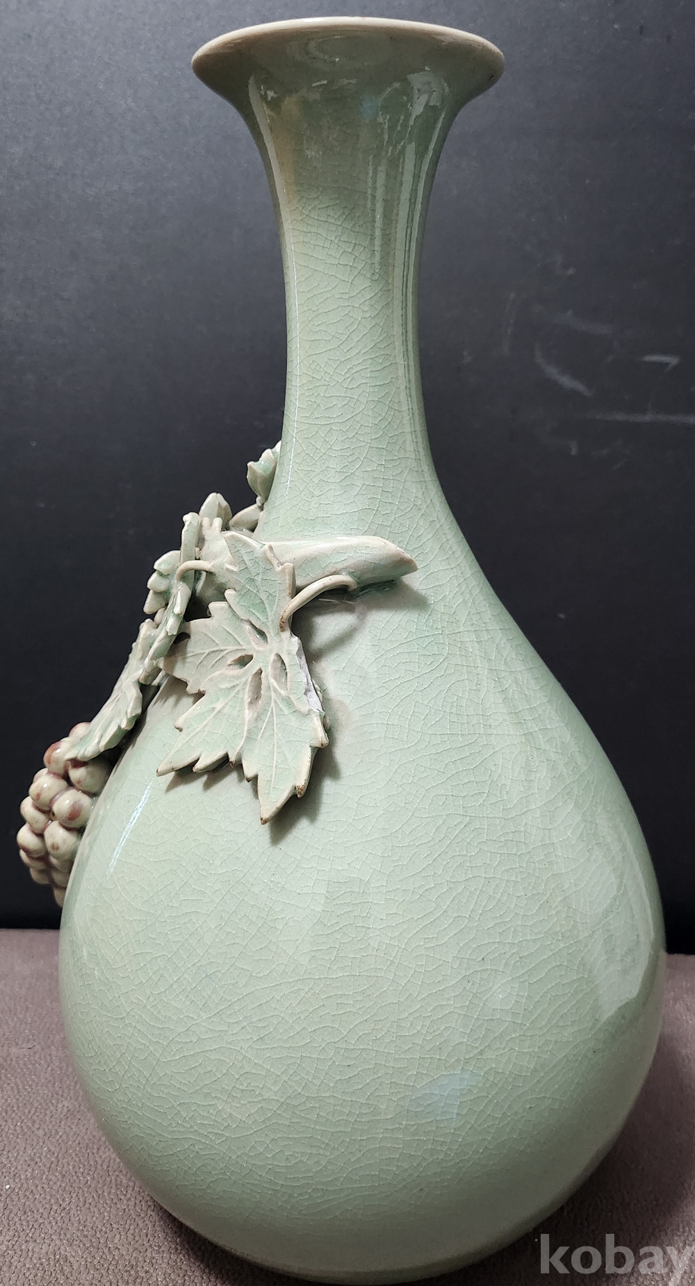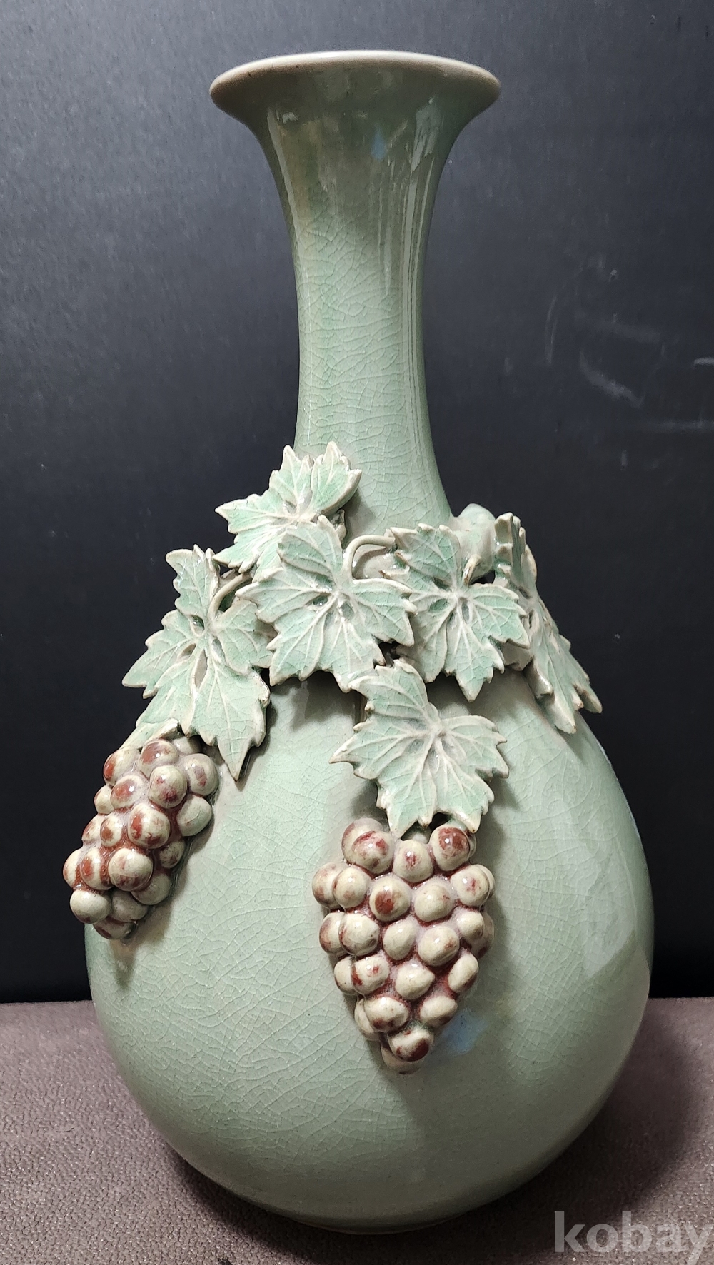 청자철화진사양각포도문주병 靑磁鐵畵辰沙陽刻葡萄紋酒甁