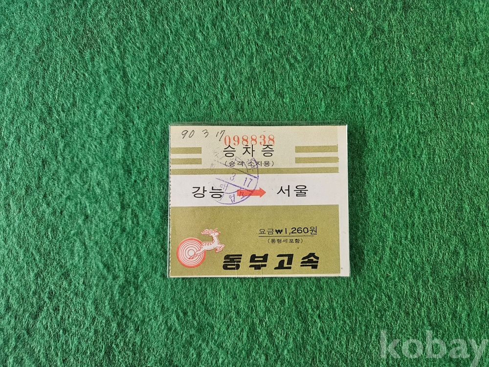 - 승 차 증 (승객 소지용) " 강능 - 서울 "