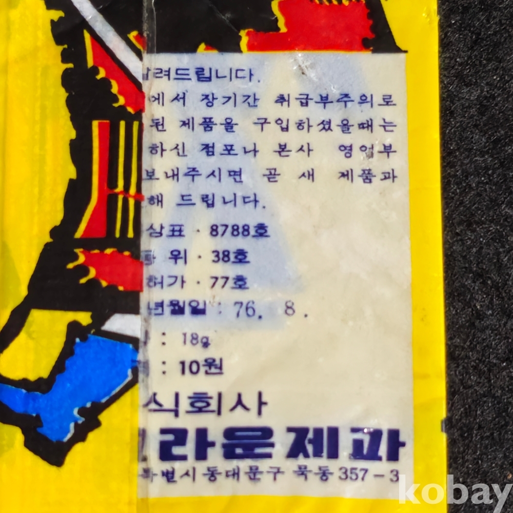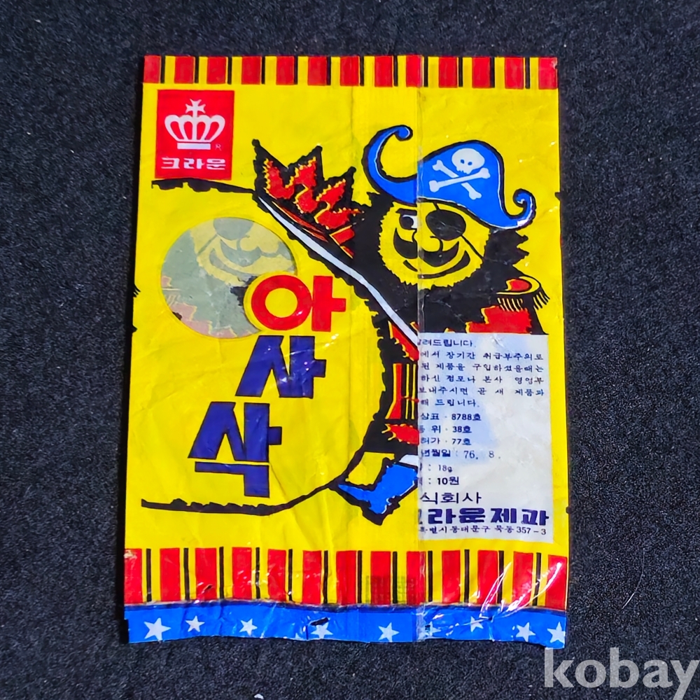 (((근현대자료/과자봉지))) 크라운제과 / '아사삭' 과자 비닐 포장지 / 1976년