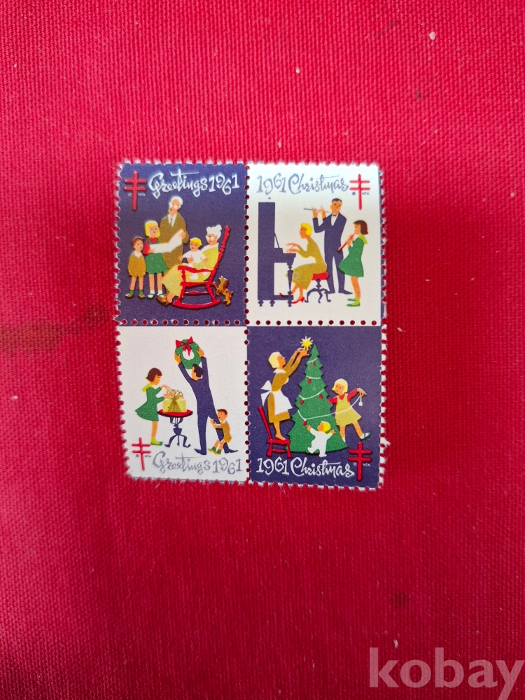 미국 크리스마스 씰---1961년 네 장 ----실물 이미지 그대로 있습니다