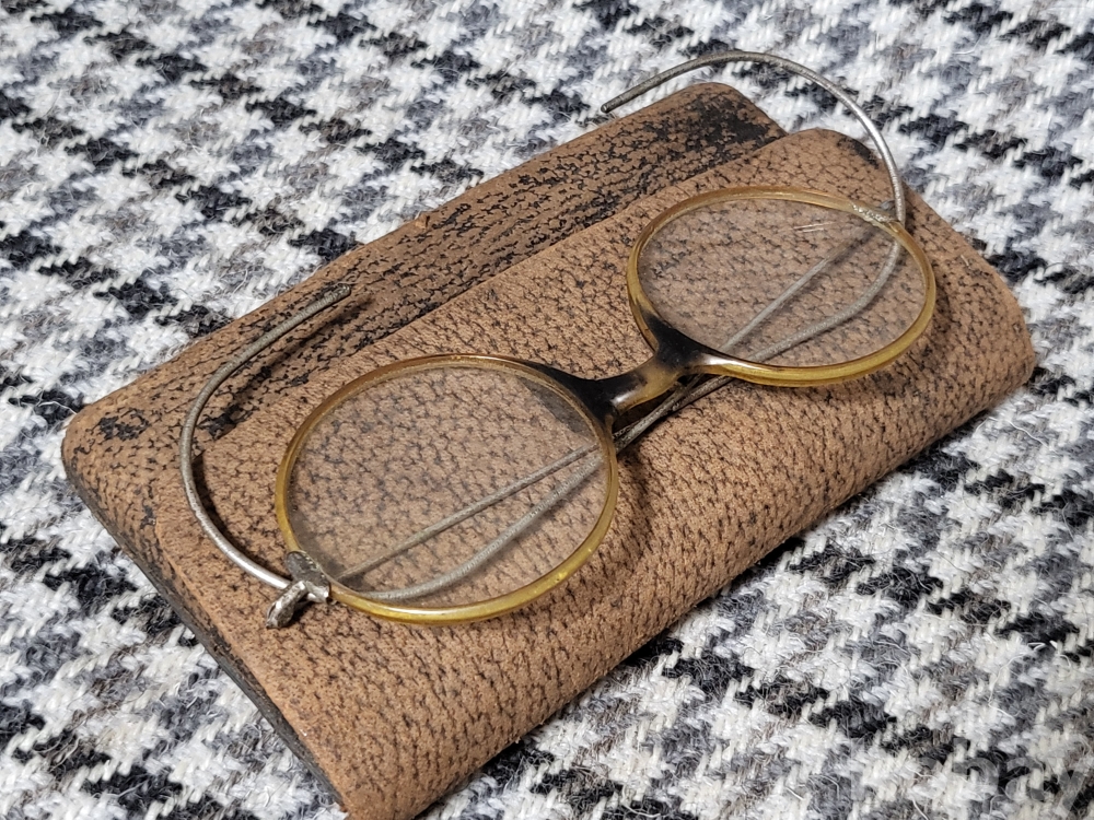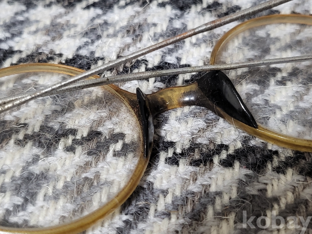 안경테의 재질은 대모갑, 즉 구갑으로 추정됩니다.