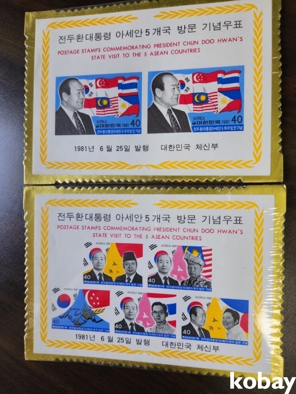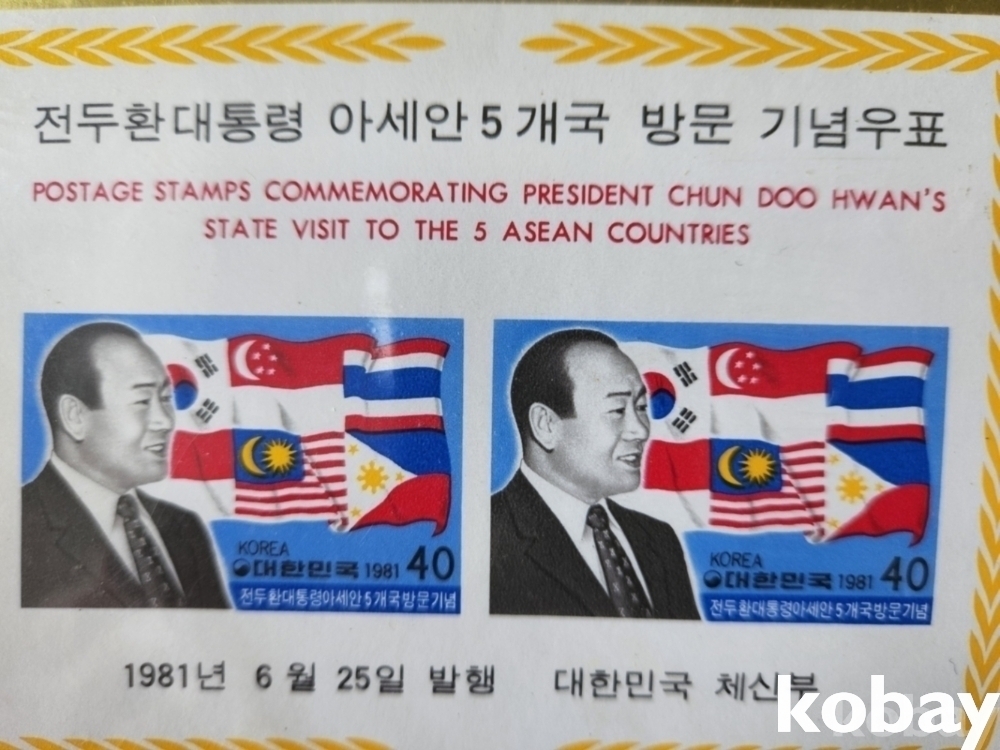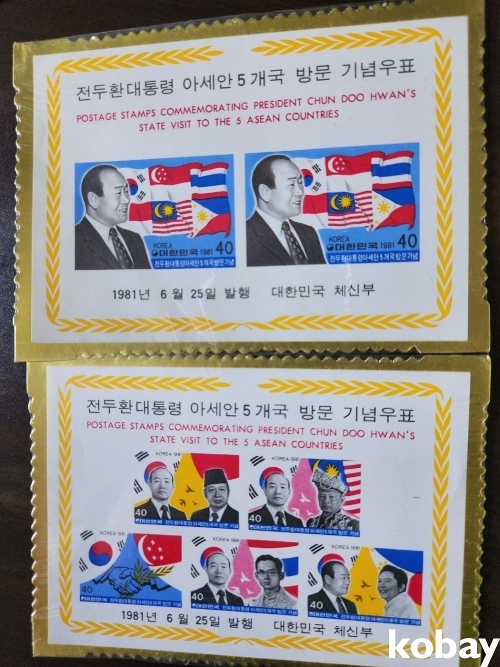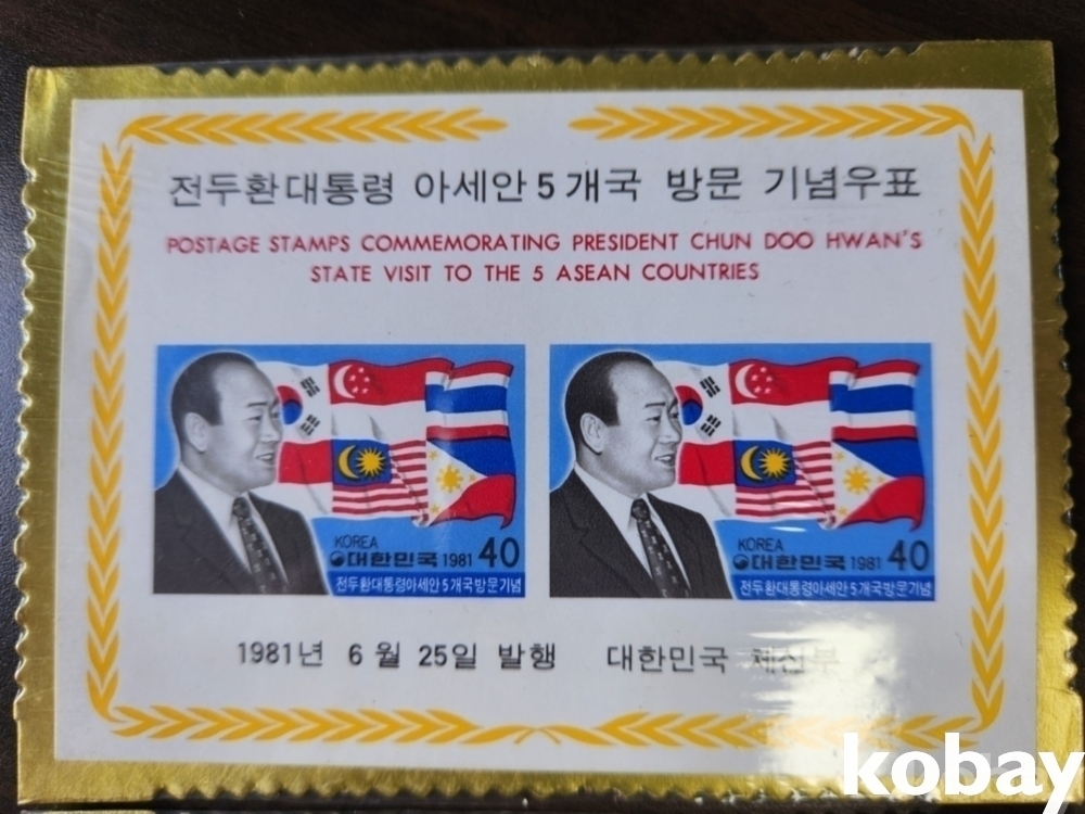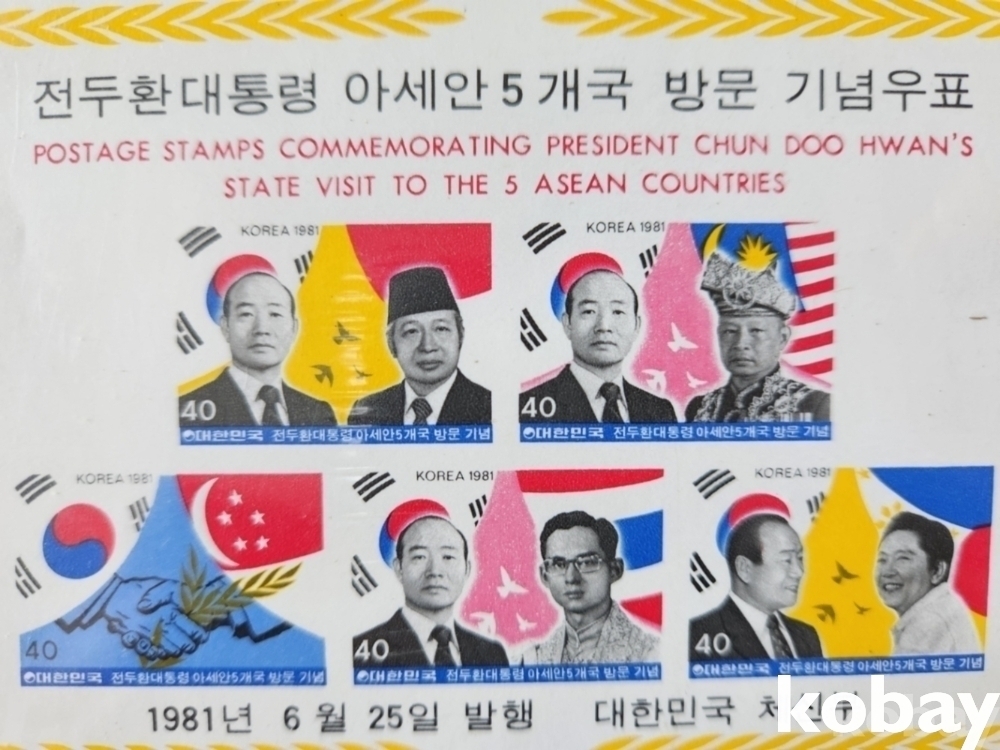 1981년 6월 25일 양국가의 원수와 국기를 도안 하여 발행된 우표 입니다.