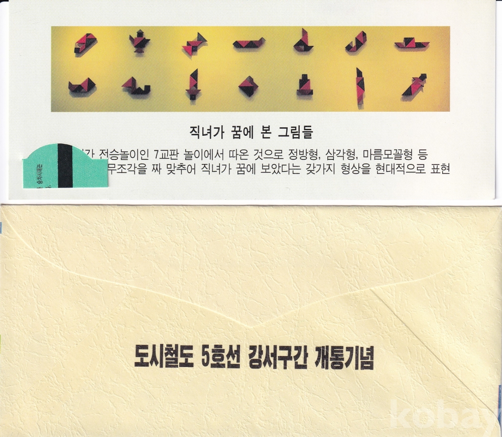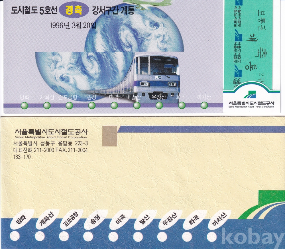 - 1996년 3월 20일 서울도시철도 5호선 강서구간 개통 기념 보통권 승차권 - 봉투포함