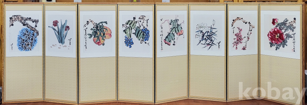 고당 古堂 박상렬 朴相烈 화훼도 花卉圖 8 曲 병풍 作品
