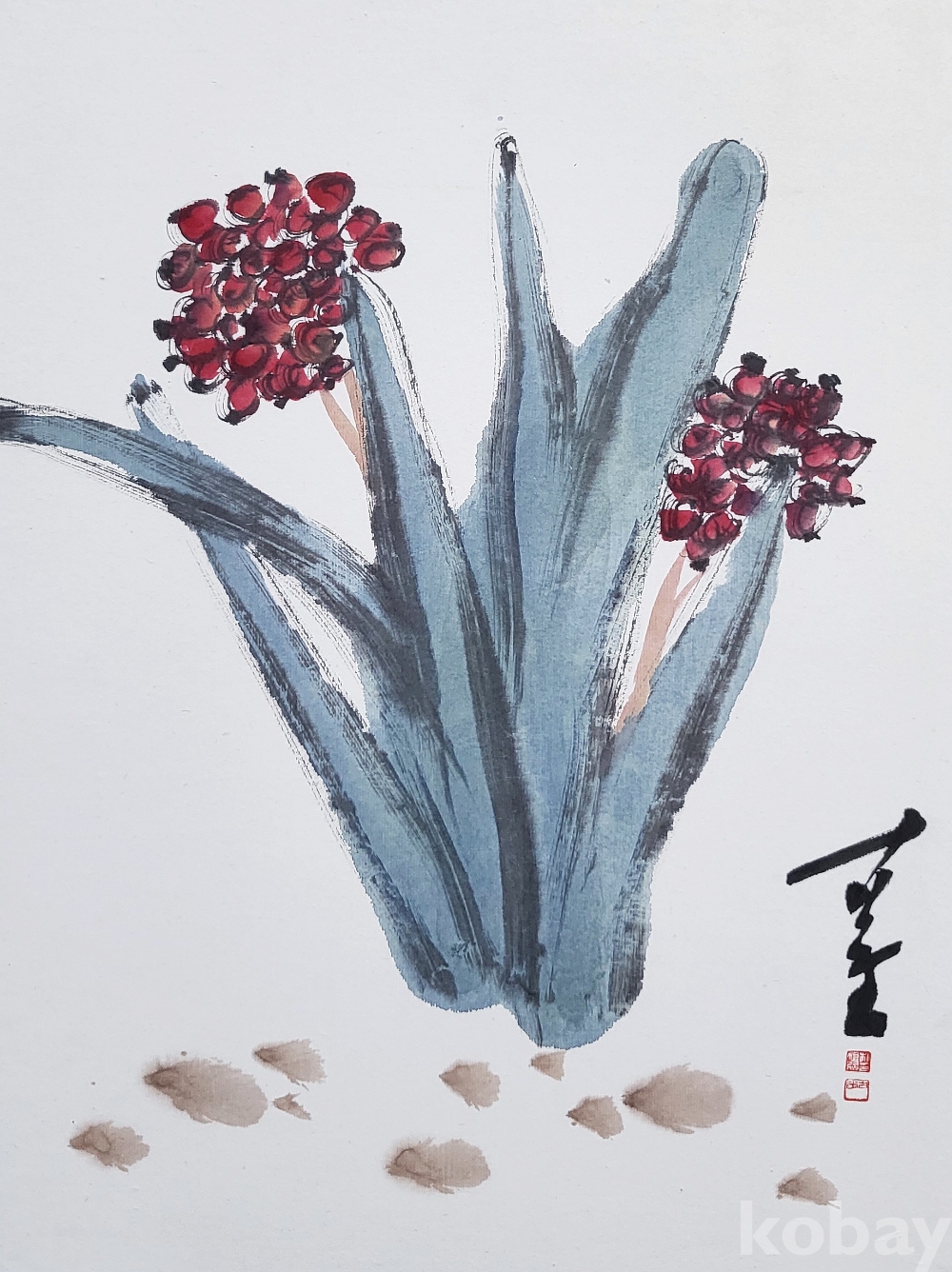 원소장자께서 한국화 작가분의 전시회에 출품되었던 작품을 구매하셨던 작품입니다