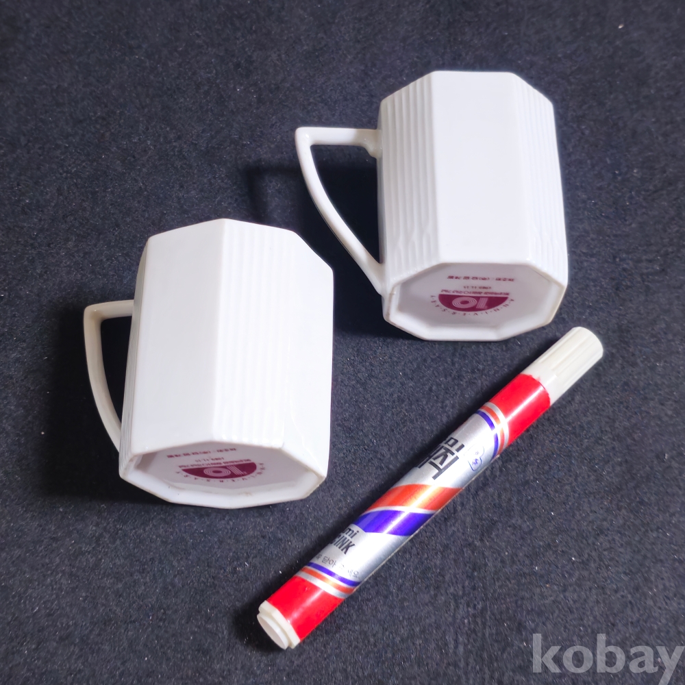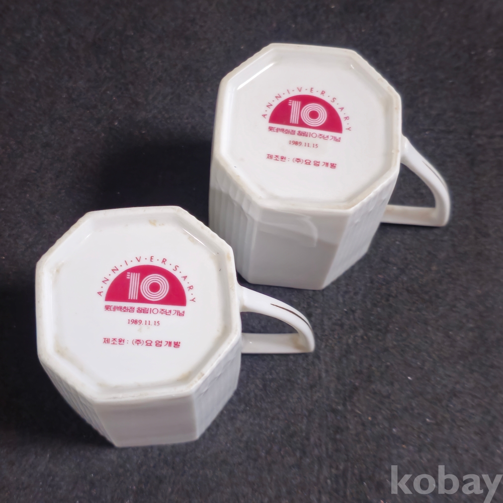 (((근현대사자료/도자기커피잔))) 1989년 롯데백화점창립 10주년기념 커플 도자기커피 (요업개발)