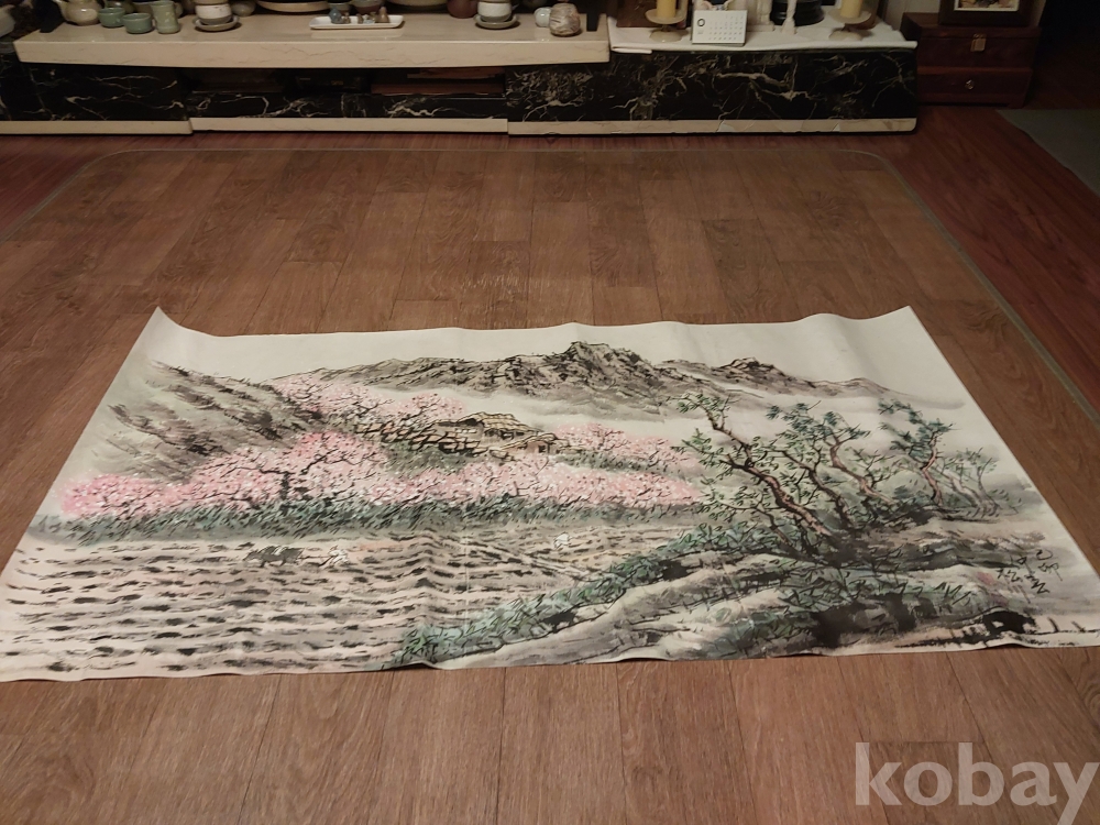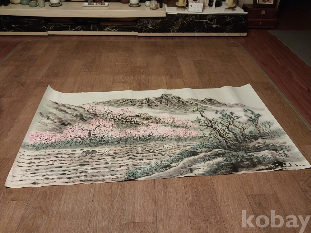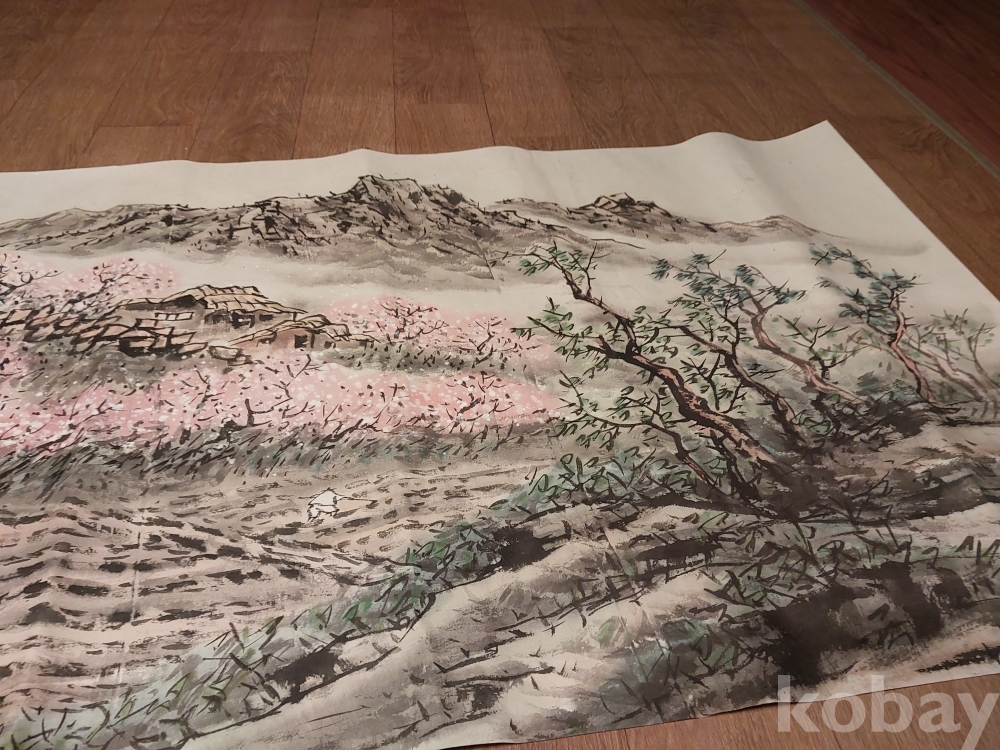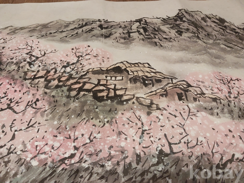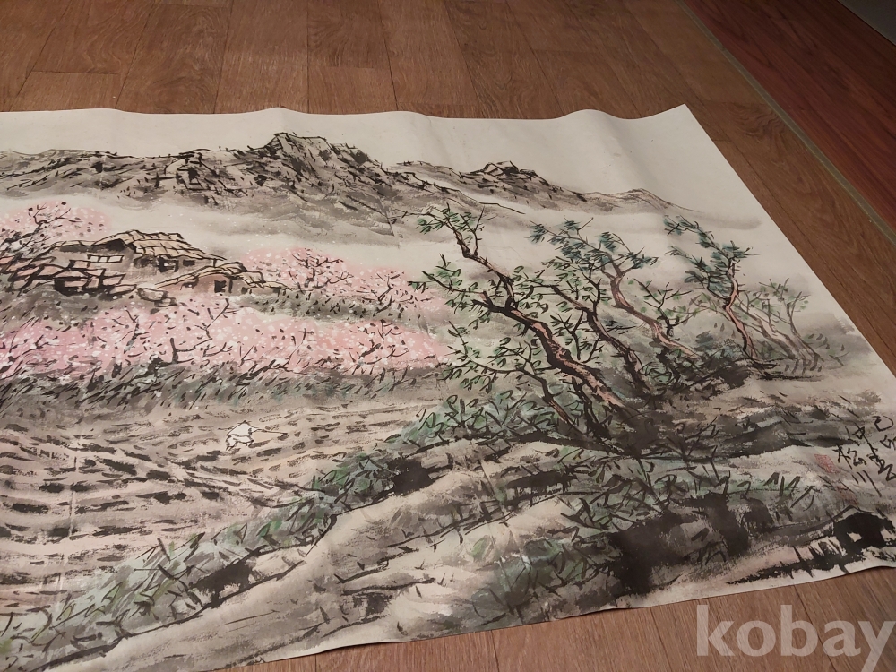 송천화백님의 청전 이상범류 장식성이 좋은 춘경산수풍광입니다.