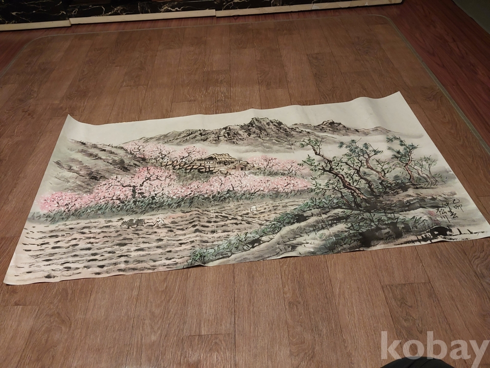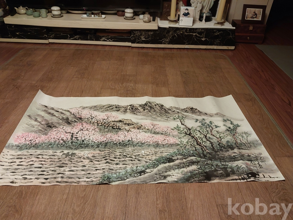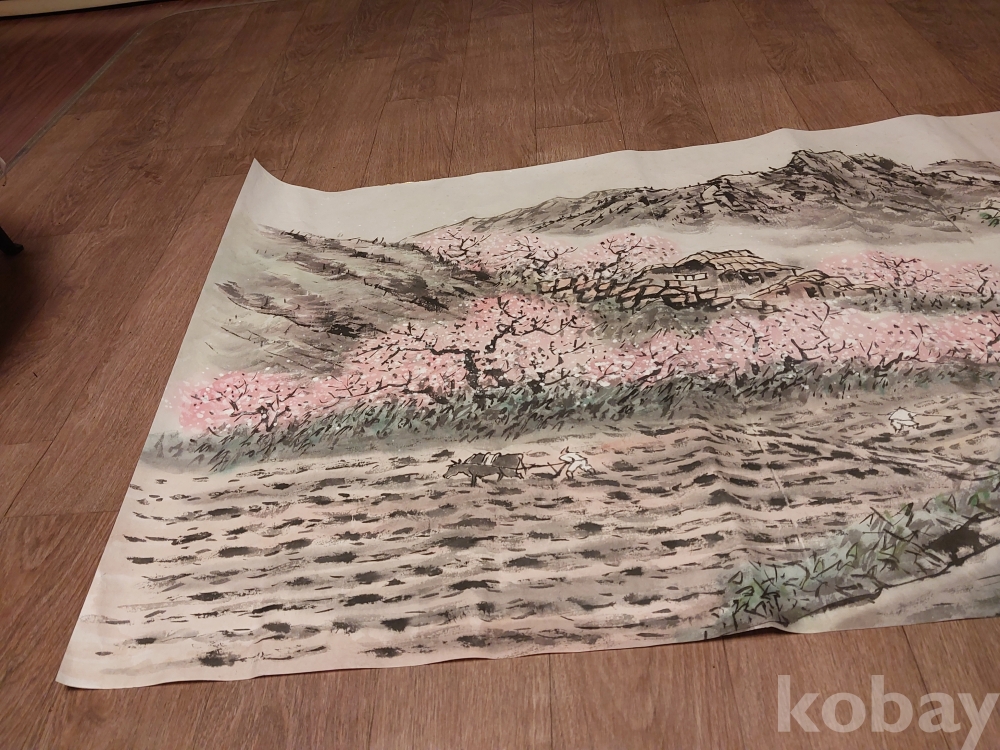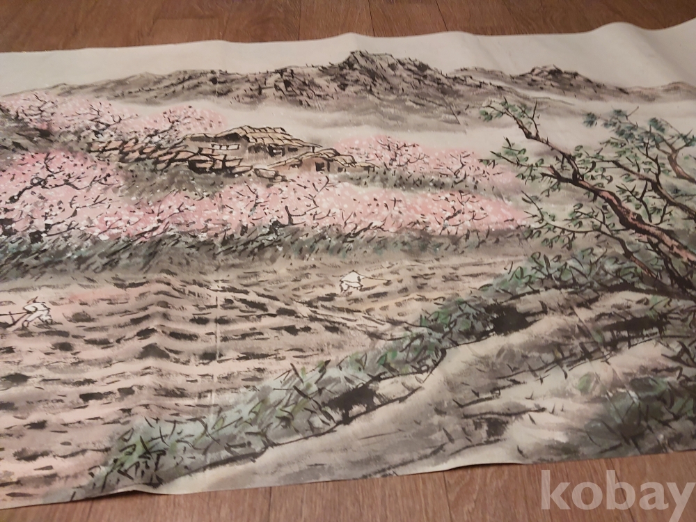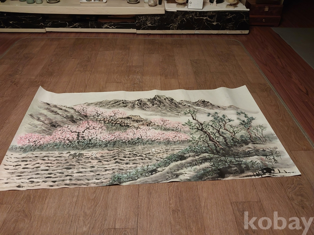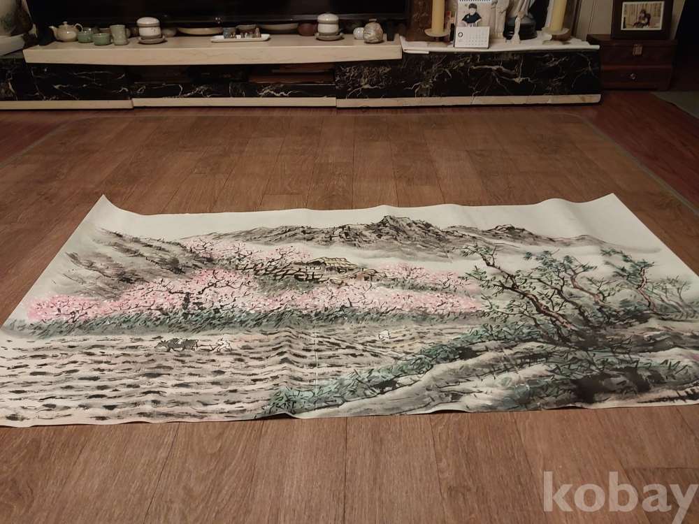 송천화백님의 청전 이상범류 장식성이 좋은 춘경산수풍광입니다.