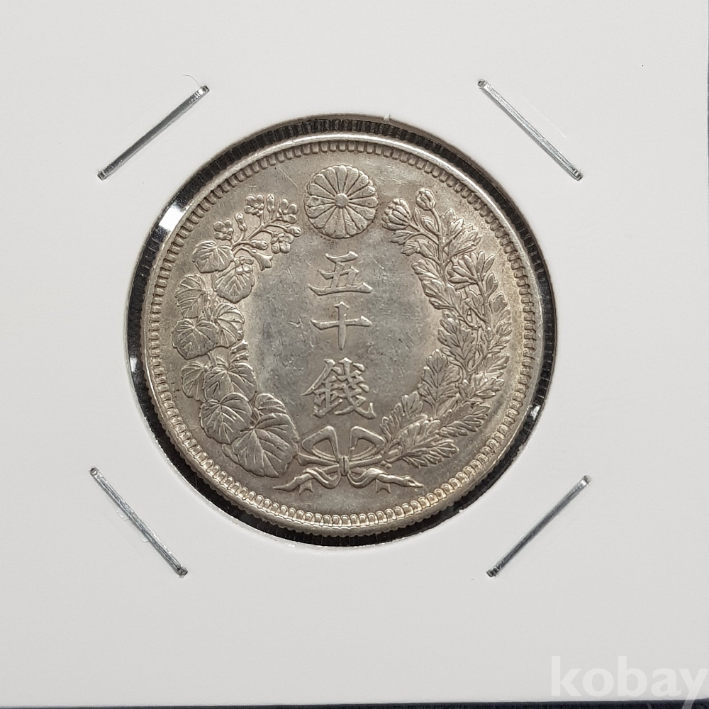 - 함량, 중량, 사이즈 등 우리나라 반원의 모태가 되는 일본 욱일 오십전 입니다.