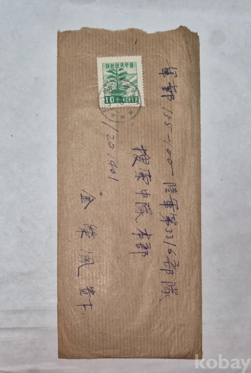 1953년 발행된 식목 10환 우표가 첩부되어 사용된 실체입니다.