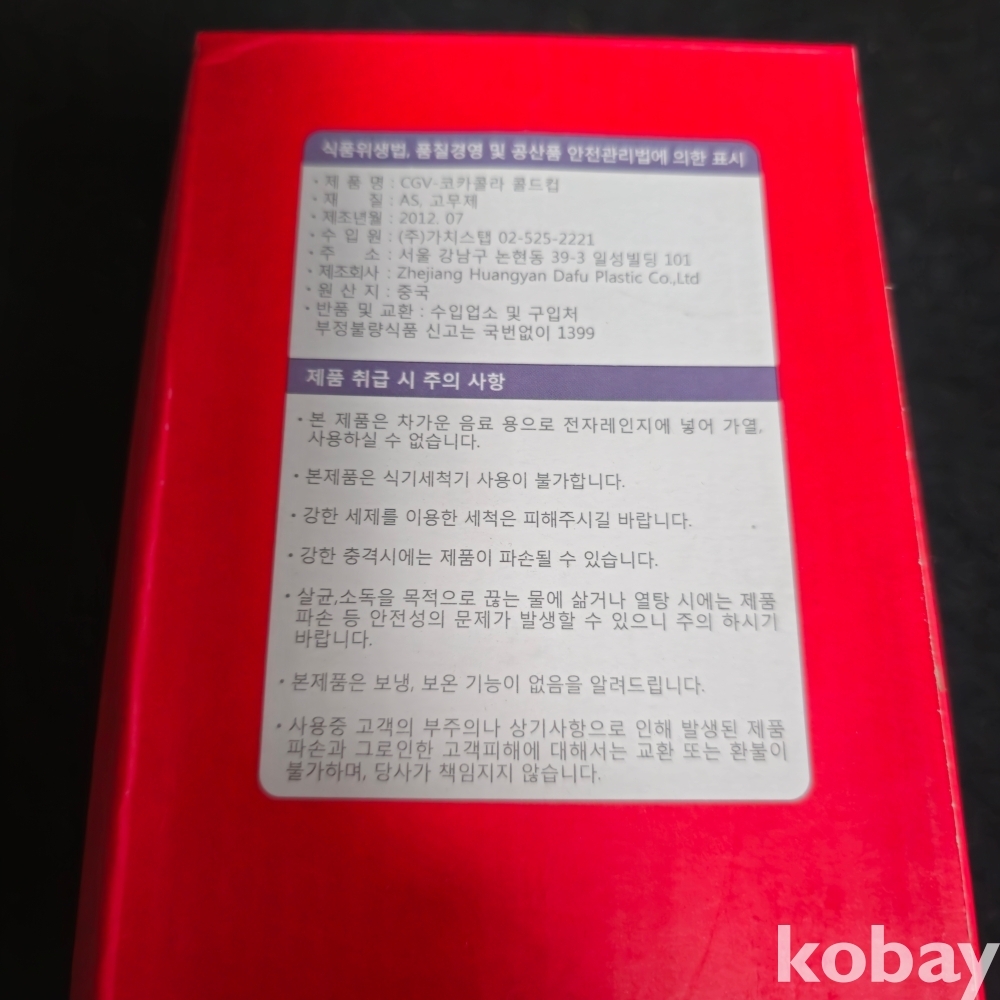 (((코카콜라))) CGV - 코카콜라 콜드컵 (AS/고무제)(미사용)