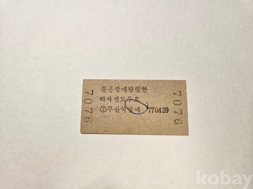 1978년 6월 9일에 사용한 비둘기호 승차권