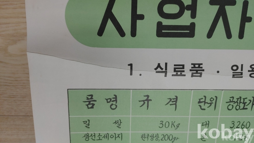70년대 국세청 생활물건 특대형 가격표 입니다