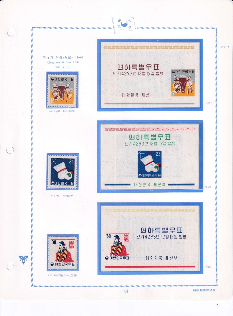 - 한국우표앨범 모음展 - 1960년 제4차 연하 6종