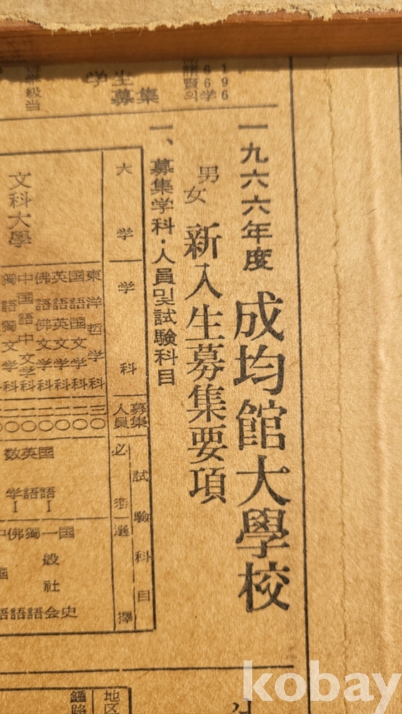 #### 본 작품의 뒷면에는 1966년 성균관 대학교 광고가 실린 신문은 함께하지 않습니다,