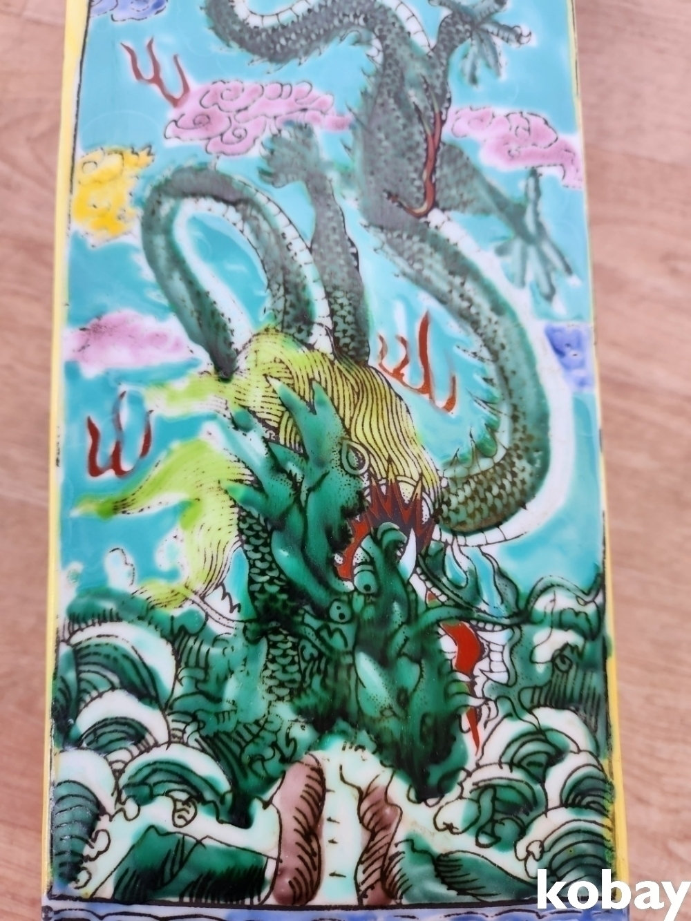 용과 봉황 박쥐 그림이 있는 사각 도자기 입니다.