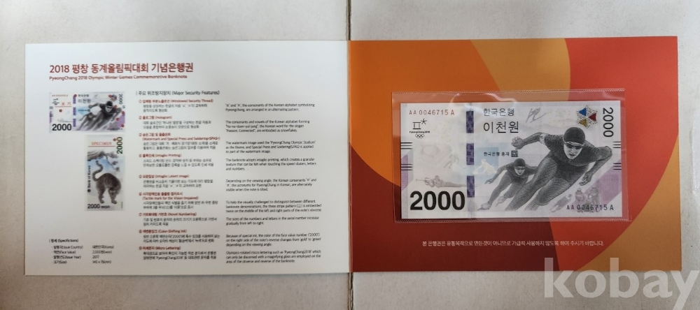 -대한민국 평창동계 올림픽기념 지폐첩 초판 AAA004포인트 입니다.