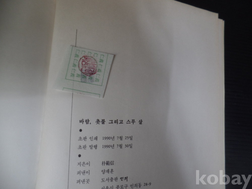 초판본// 바람,촛불 그리고 스무살 ,,박범신 지음,,,90년