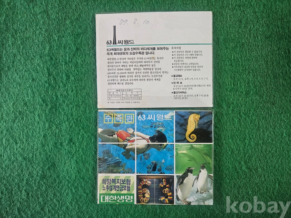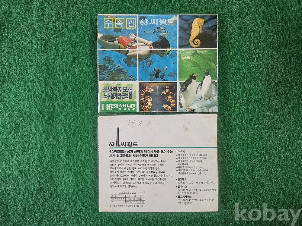 - 최대규모의 도심 수족관 소개 및 대한생명 광고 함께 인쇄, 운영,공연시간 유의사항인쇄 및 1990년대
