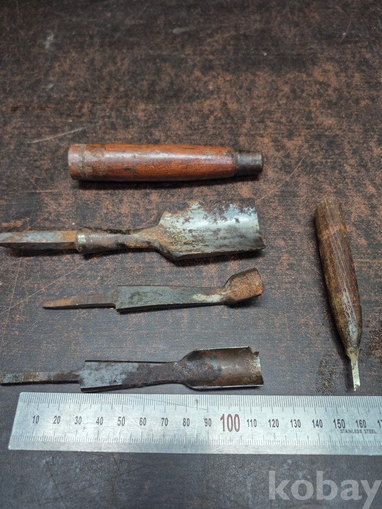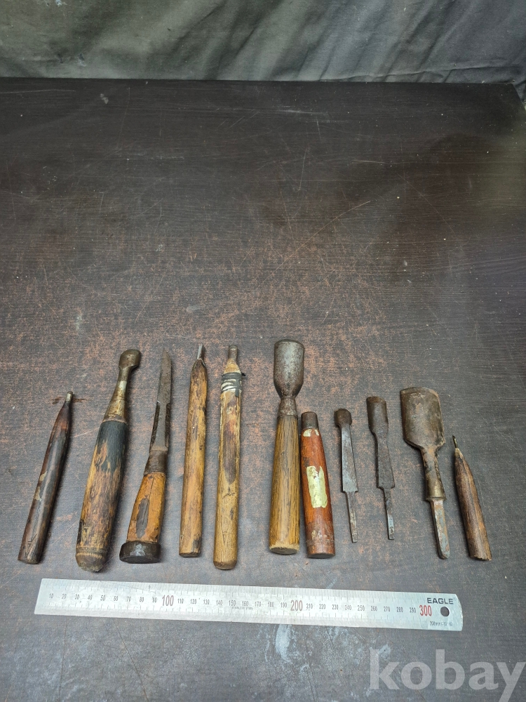 엄청나게 오래 사용한 조각도 손잡이 원목 총 10점 일괄 20*3*3