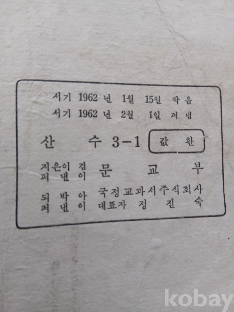 국민학교 교과서---산수 3학년1학기 (1962년 처음 지음 1962년 발행)----앞 뒤표지 조금 낡았으며 공부한 흔적 더러 있으며 61페이지에서 64 페이지 까지 2장 낙장있는 것외 대체로 양호합니다