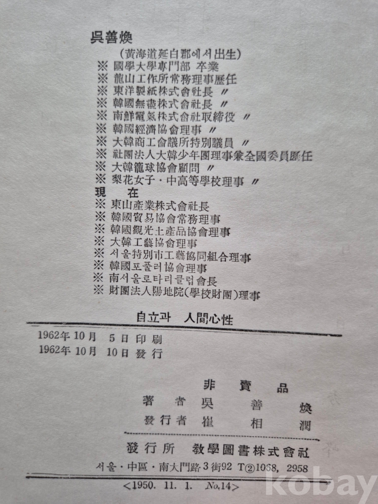 1962년 발간한 수필•평론집 『自立과 人間心性』
