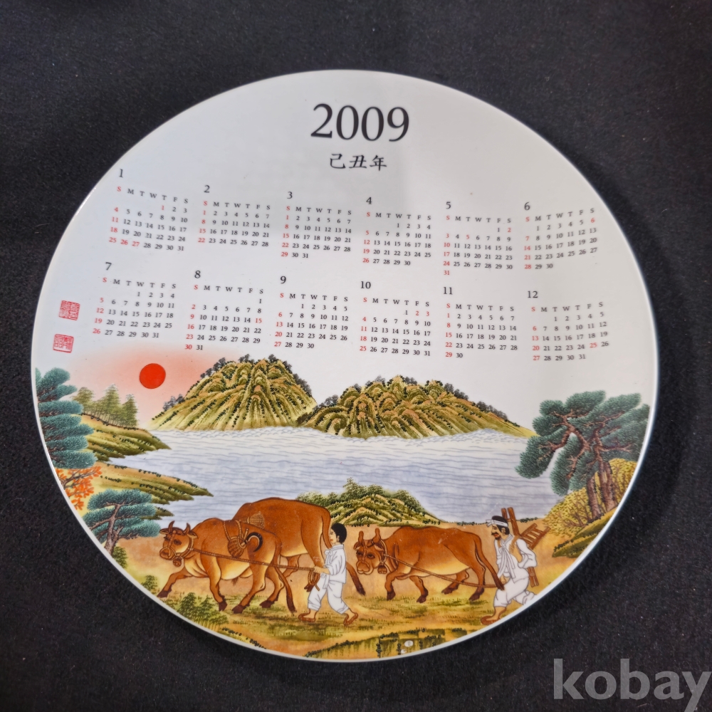 (((근현대사자료/캘린더접시))) 2009 기축 (己丑)년 소띠 캘린더 도자기접시 (한국도자기)