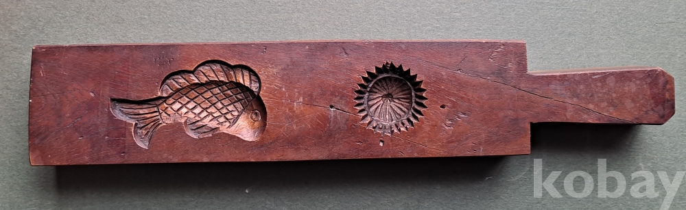 년대좋고 물고기 문양이 조각된 박달나무 '떡살'