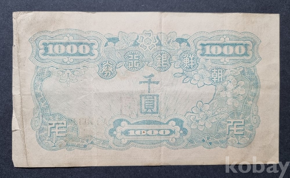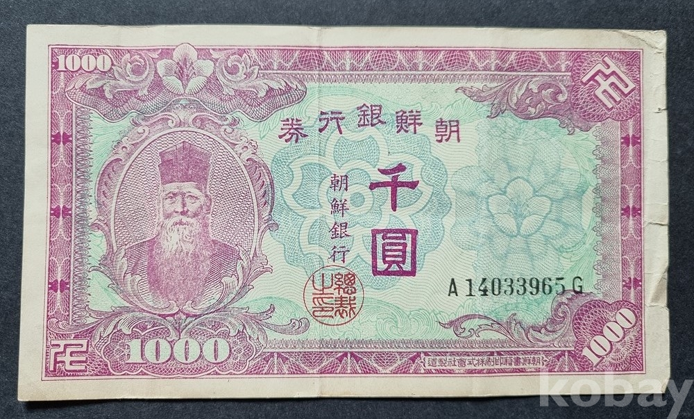 X-14 / 조선은행권 옛날 지폐 "천원" (수노인상)