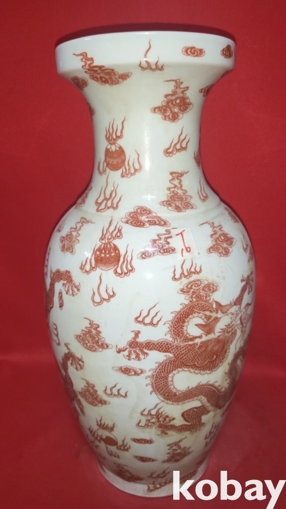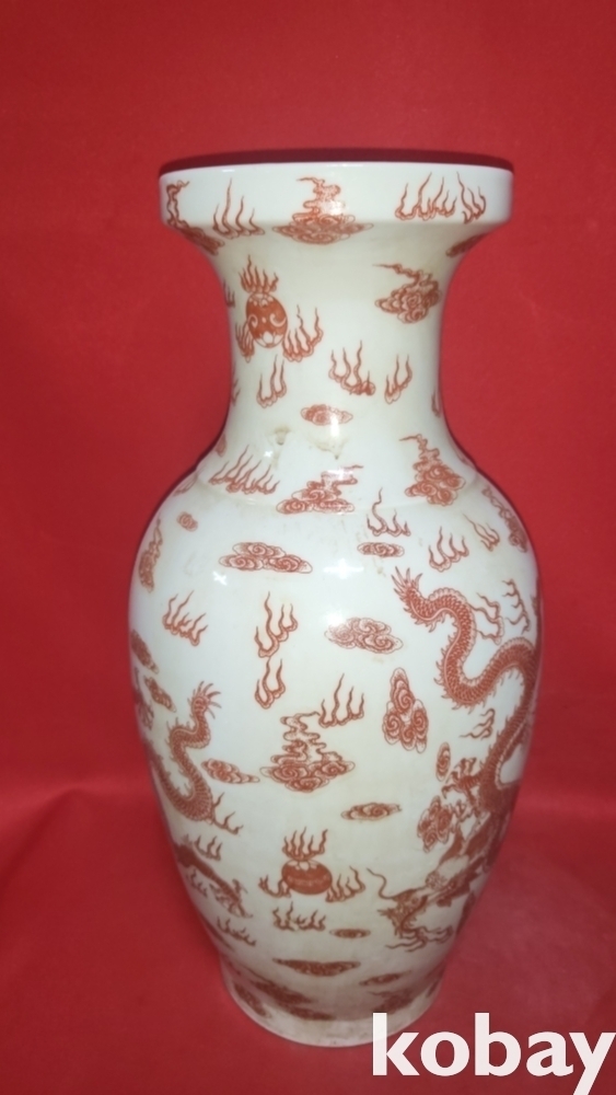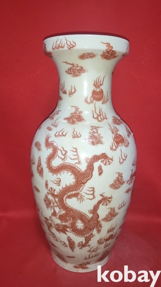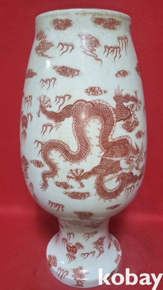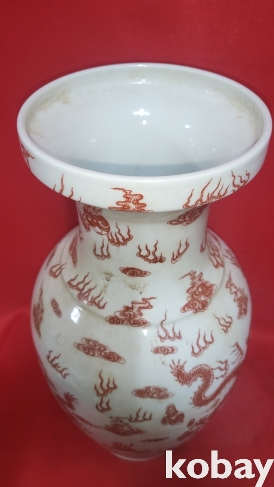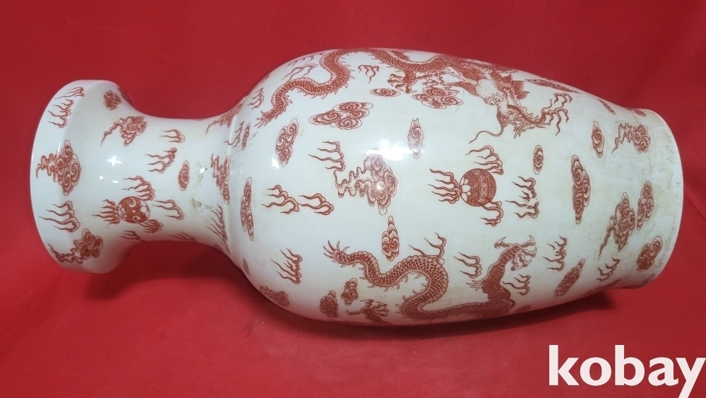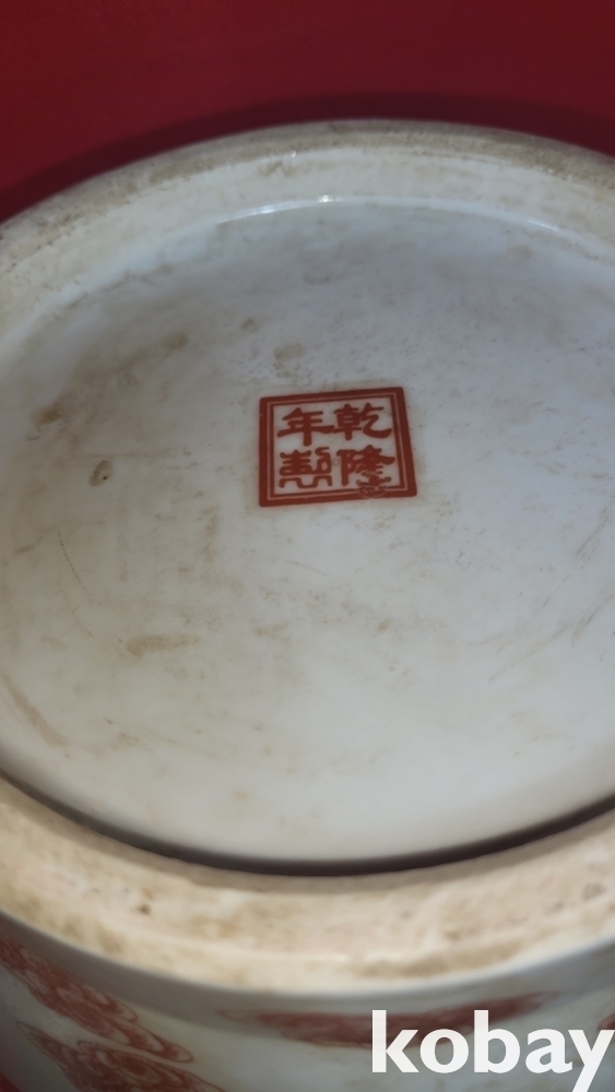 건륭연제 관지 보이는 홍지 운용문양 광구 병입니다,