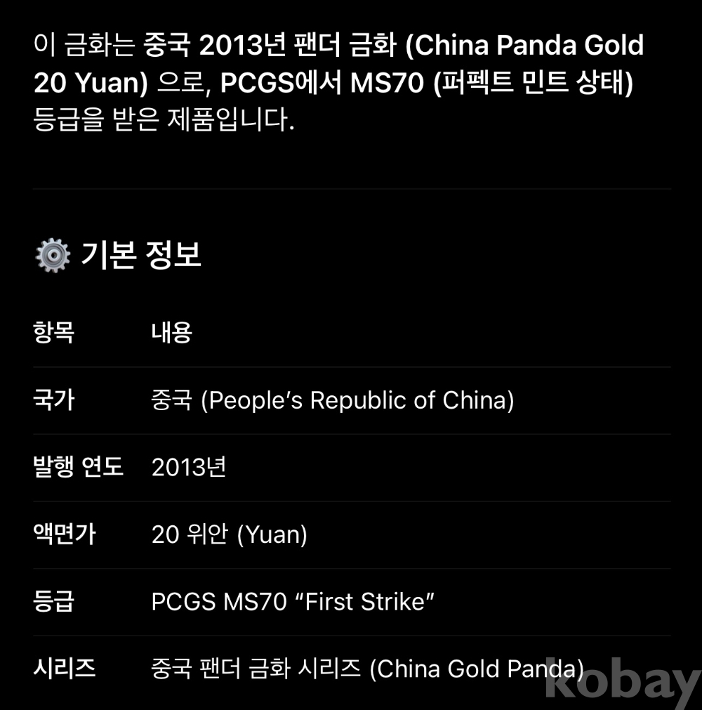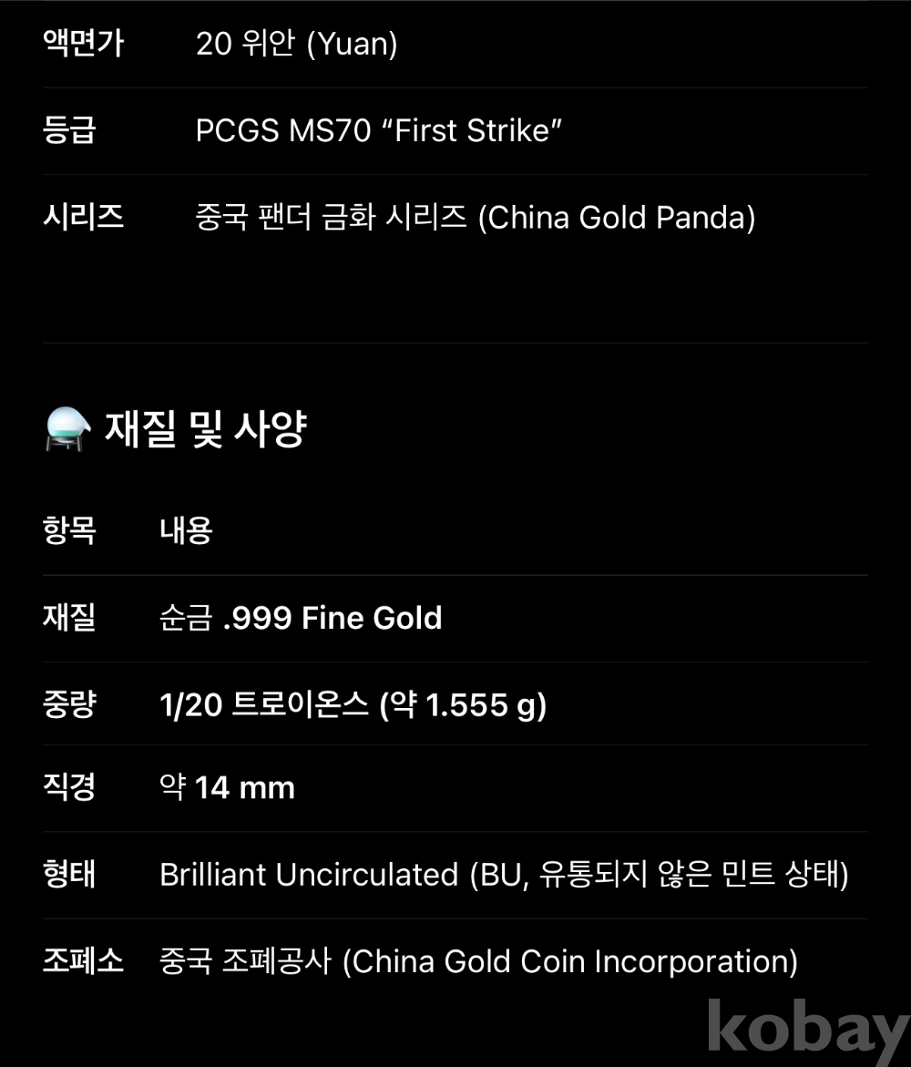 | 물품 크기 | PCGS |