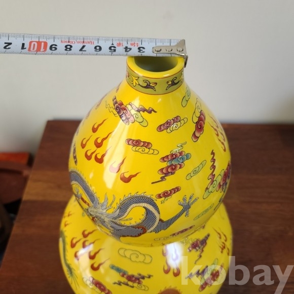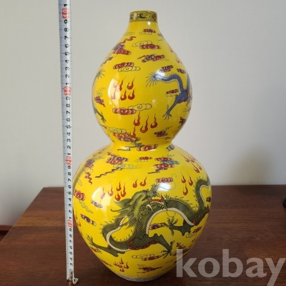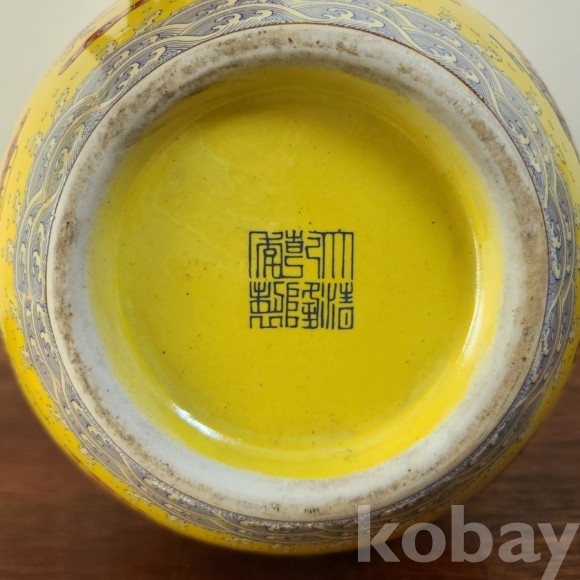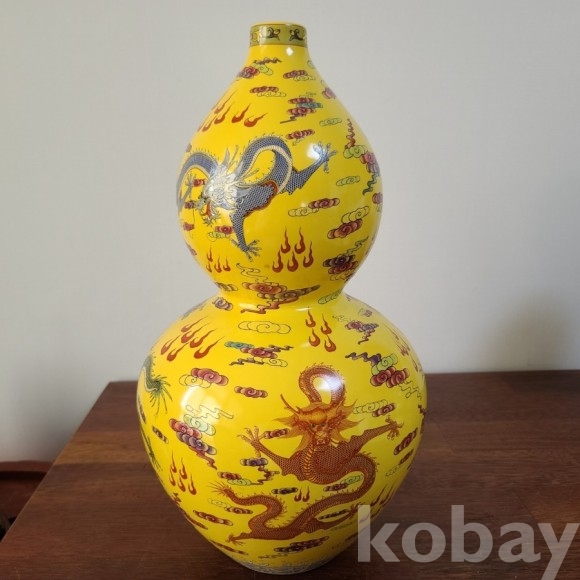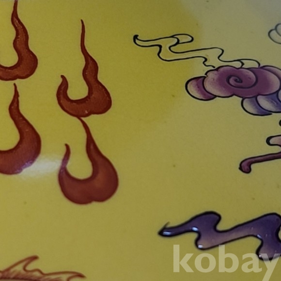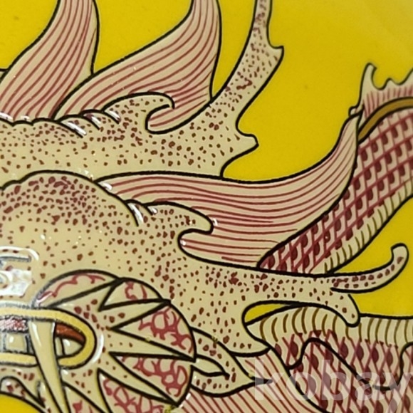 노란빛에 전면에 용문이 담겨있는 전통 중국 도자기 입니다