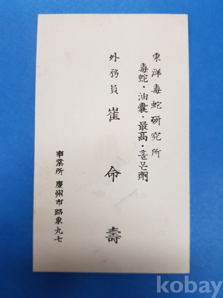 **** 1950년대 東洋毒蛇研究所 外務員 명함
