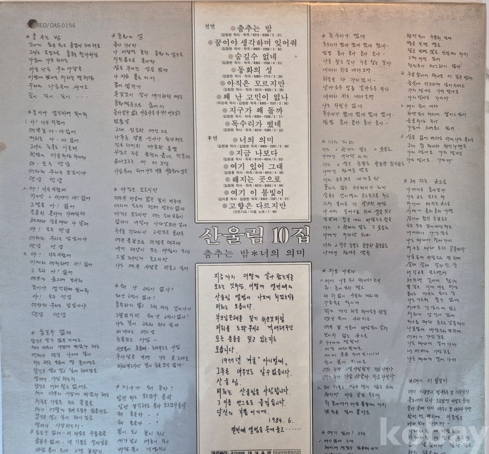 | 제조국 | 한국 | 발매연도 | 1984 |
