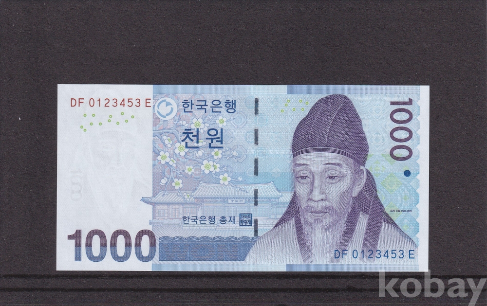 - 한국은행 2007년 3차 1,000원 012345 3 번 준어센딩 미사용 지폐 입니다.