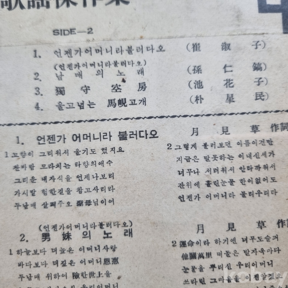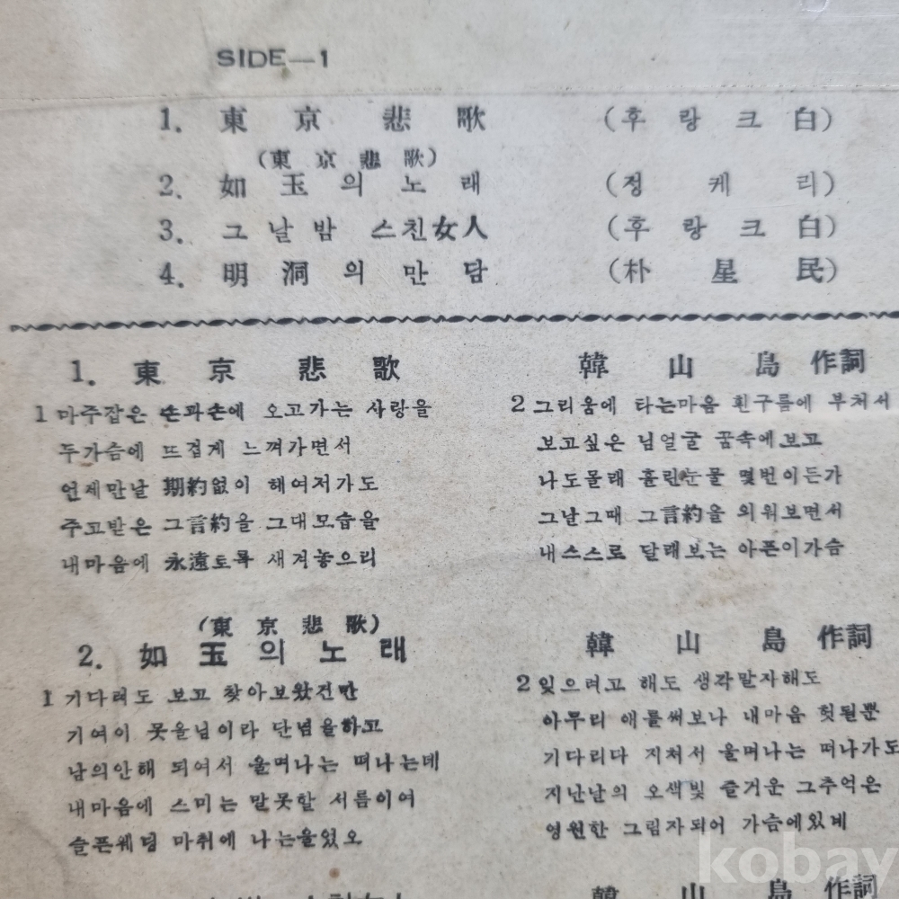 ㅡ후랑크백의 "동경비가"/최숙자의 "언젠가 어머니라고 불러다오"ㅡ