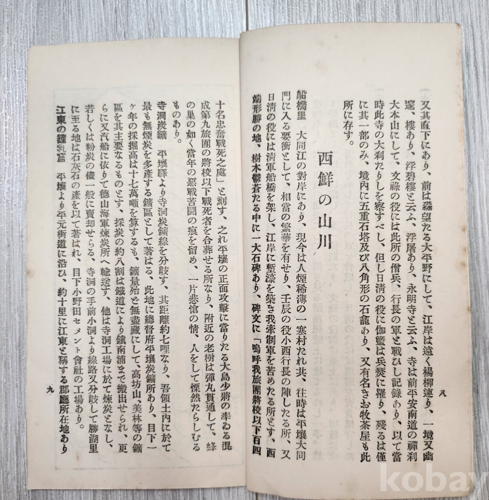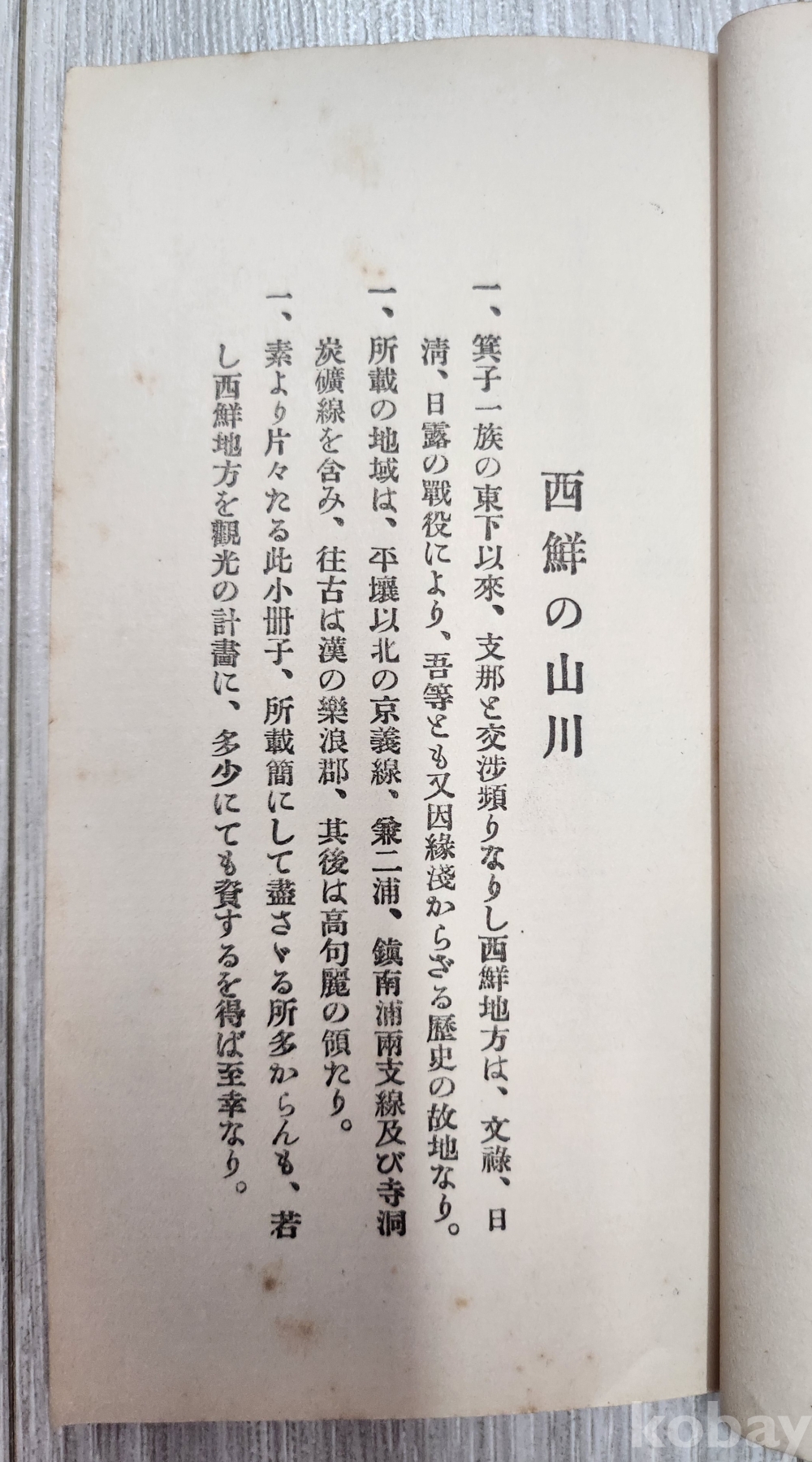 일제강점기 발행된 서선의산천 소형 관광 안내책자 입니다 남만주철도 주식회사에서 발행 되었습니다 경성 조선용산이라 쓰여 있습니다 일제감정기에 조선행정구역상 서선은 서북지방 황해도와 함경도 아우르는 명칭 입니다 23페이지 상태 매우 양호합니다