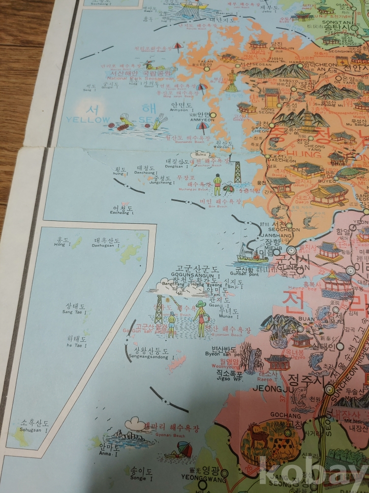 접은 자욱과 모서리에 조금 찢어진 부분이 있으나 상태 깨끗 함
