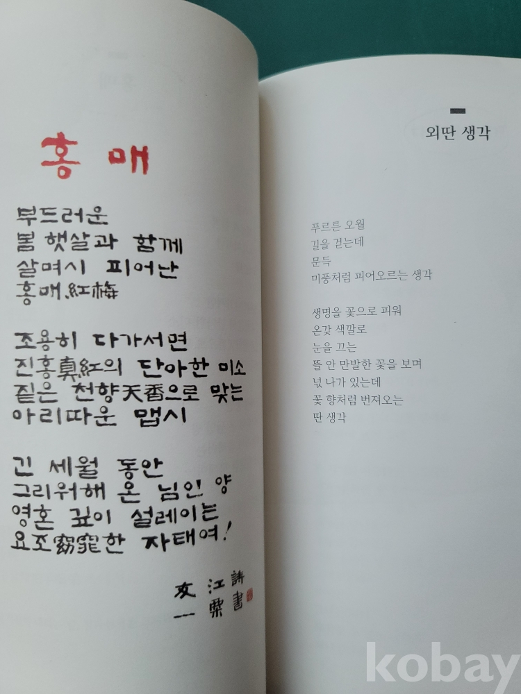 오명섭(서예가)의 작품과 윤중일 작가의 사진이 아름다운 시화집.