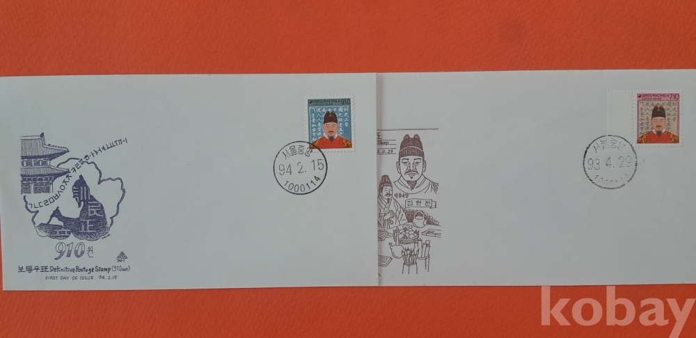 기본료 110원 시기 보통 초일봉피 세종대왕 관련 2종 입니다.