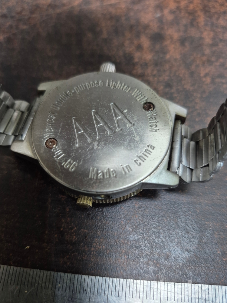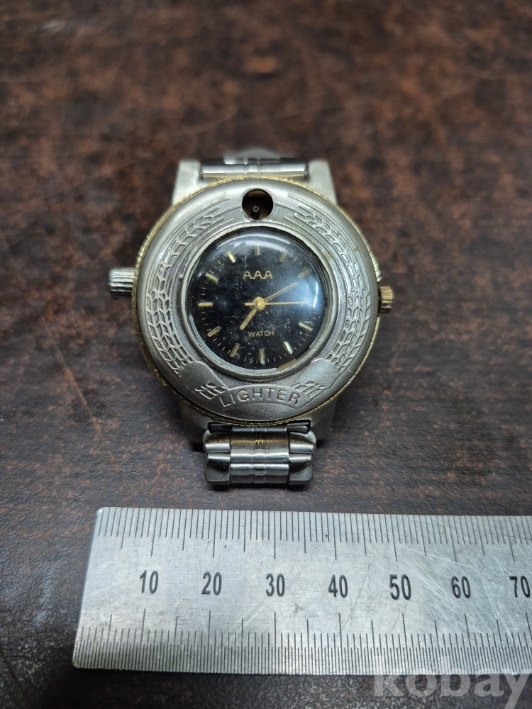 손목시계형 라이터겸 시계 시계 기계식 시계 입니다 시간 정상작동합니다 가스는 충전해보지 않앗어요 5*10*2.5