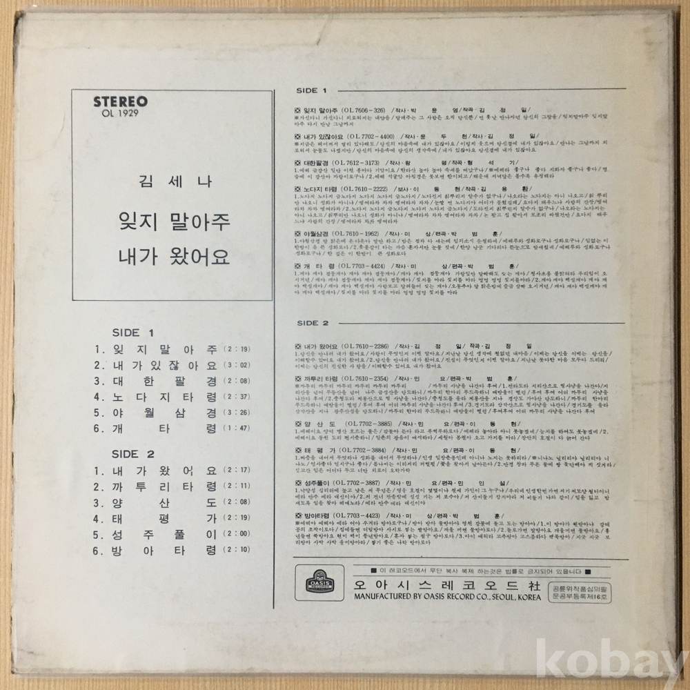 ⊙ 1977년 / 오아시스레코드 - OL 1929