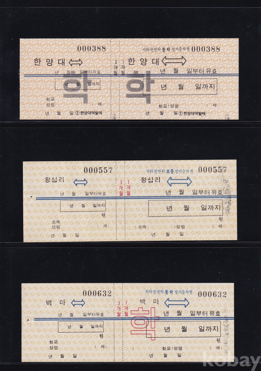 - [기차, 전철, 버스 승차권 모음展] - 지하철 연락 통학 정기 승차권 3종 일괄