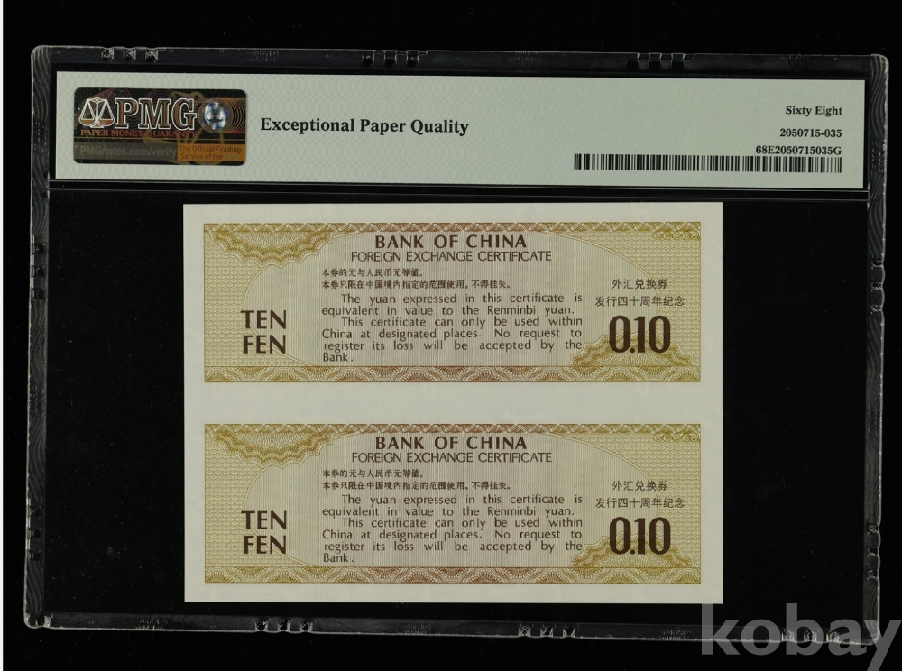 중국 1979년 10펀 언컷 연결권 PMG 68 EPQ