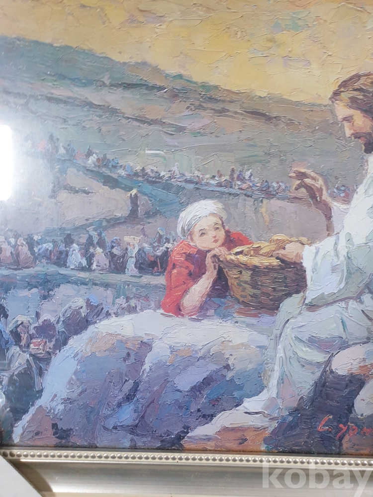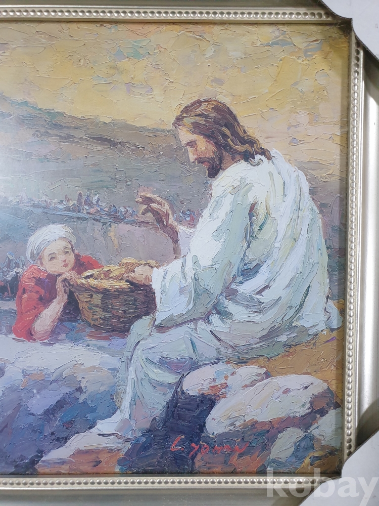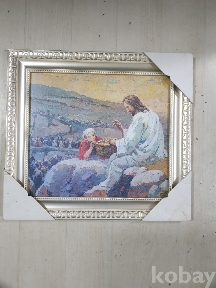 {천원경매} 10-2005 에수님과 떡 광주리와 소년 액자(45*40-34*30, 묶음배송불가, 착불로배송됨)