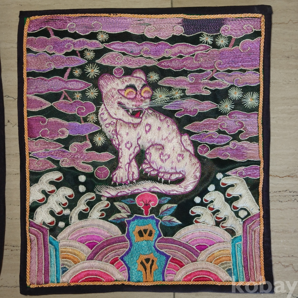 호랑이 흉배는 귀합니다 ㆍ 몸통에 두툼하게 속심을넣고 일일이 실을 꼬아자수한 우리 전통 자수법을 그대로 자수한 흉배입니다