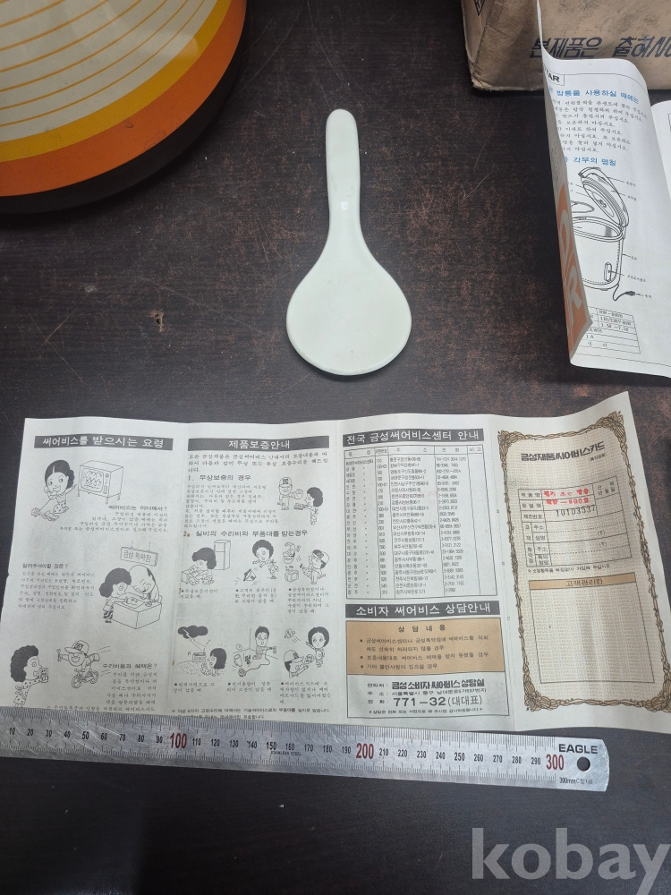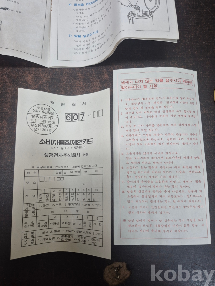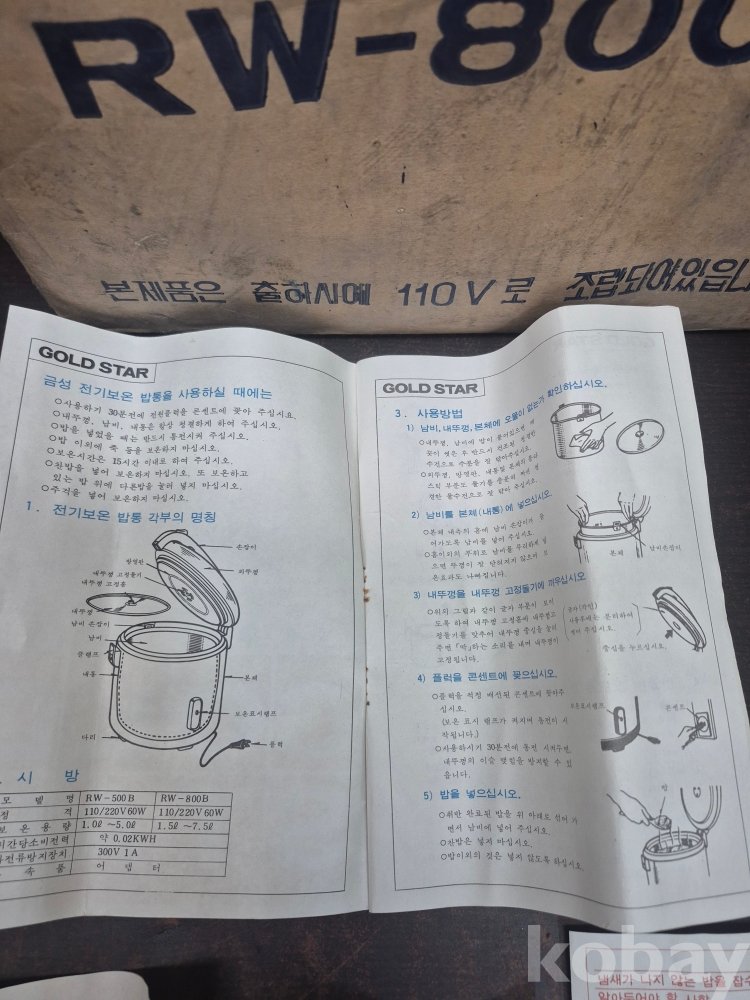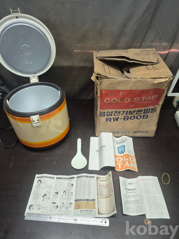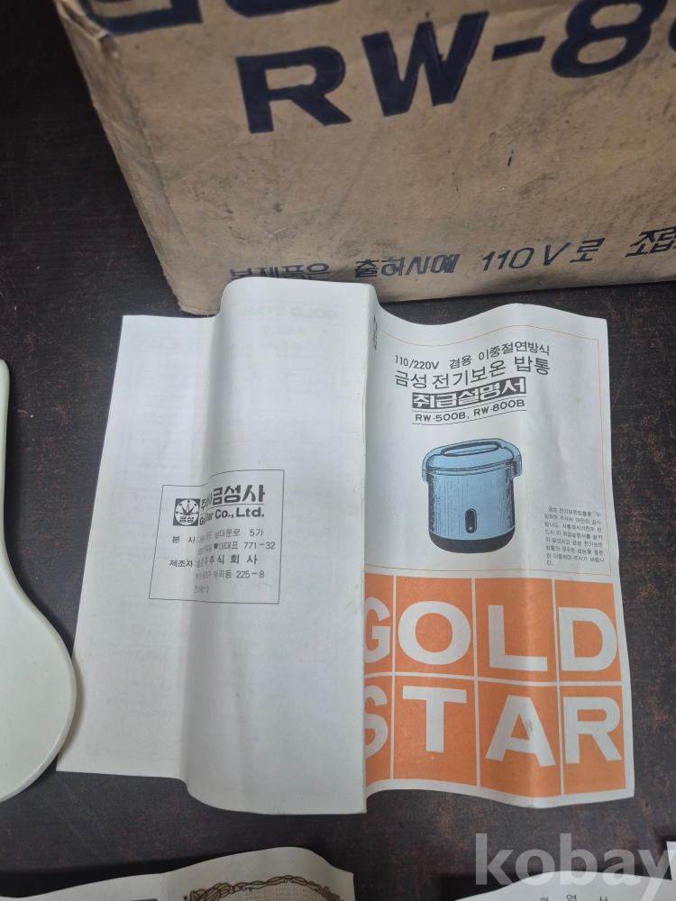 1981년 골드스타 금성전기 보온밥통 RW-800B 박스품 미사용품 손잡이 부분 없어요 사용설명서 취급설명서 소비자 품질제안카드금성 서비스 안내문 밥주걱 포함 일괄