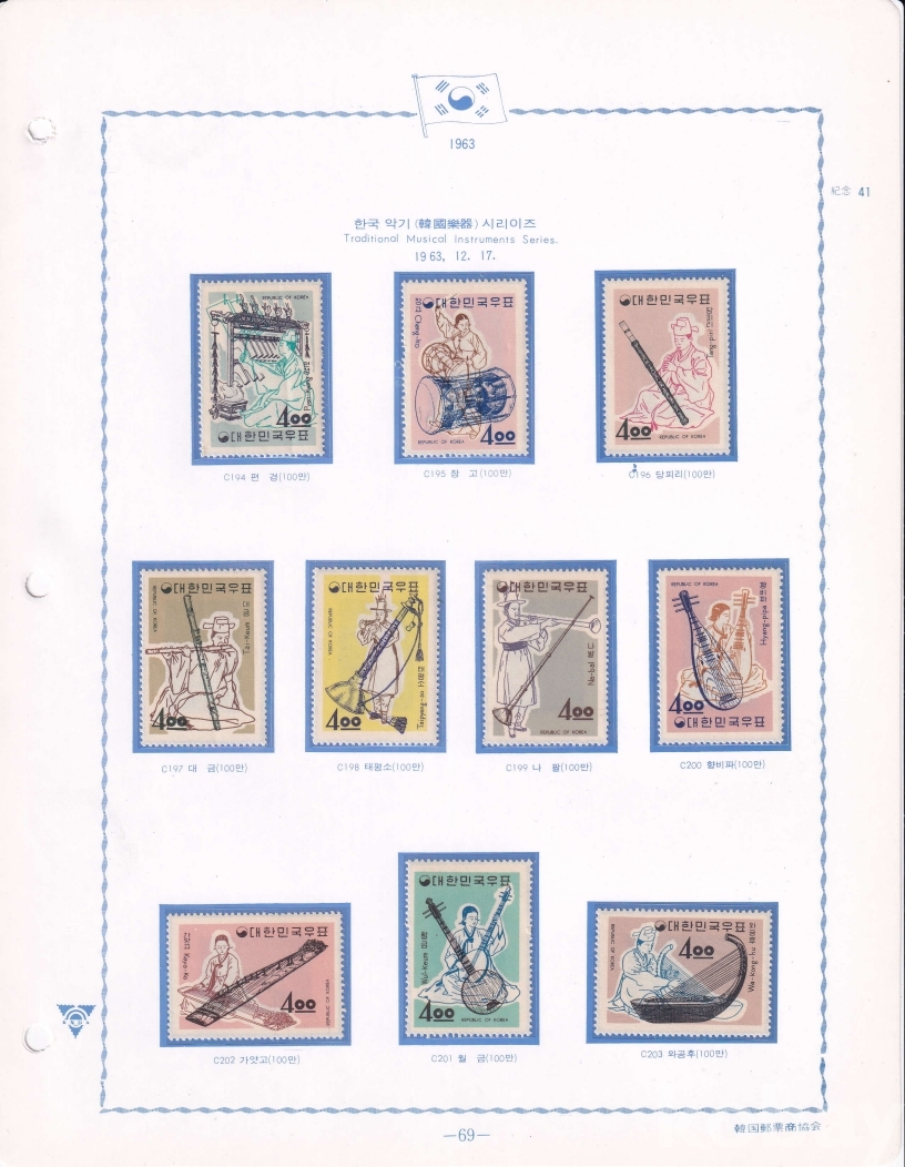 - 한국우표앨범 모음展 - 한국 악기 시리즈 우표 9종 1963년