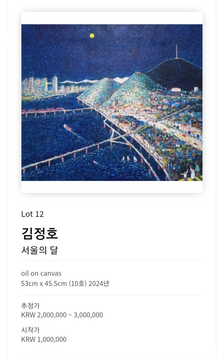 김정호 화백-서울의달 (10호)/2025/작품보증서 동봉